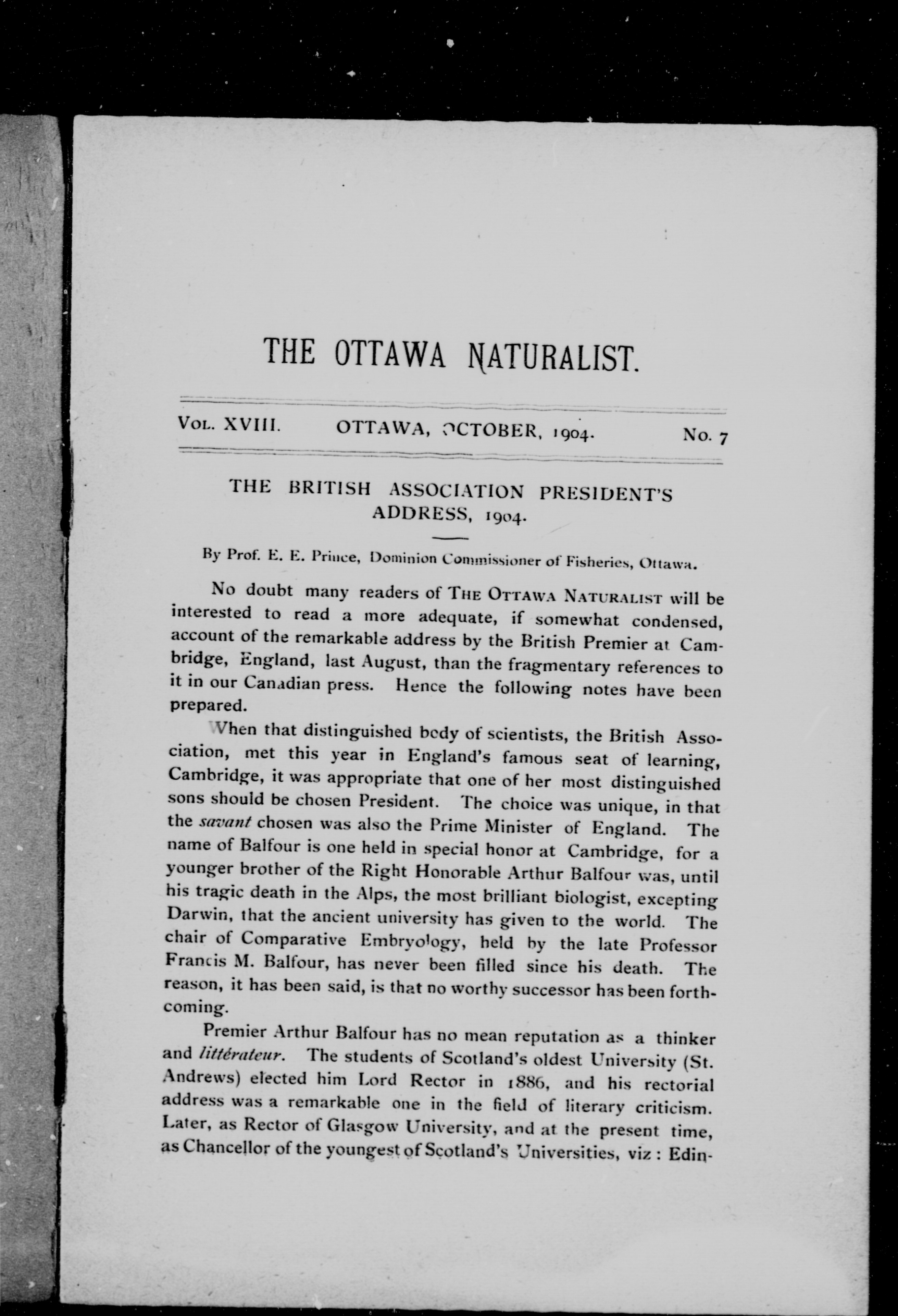The Ottawa naturalist : Vol. 18, no. 7 (Oct. 1904)
