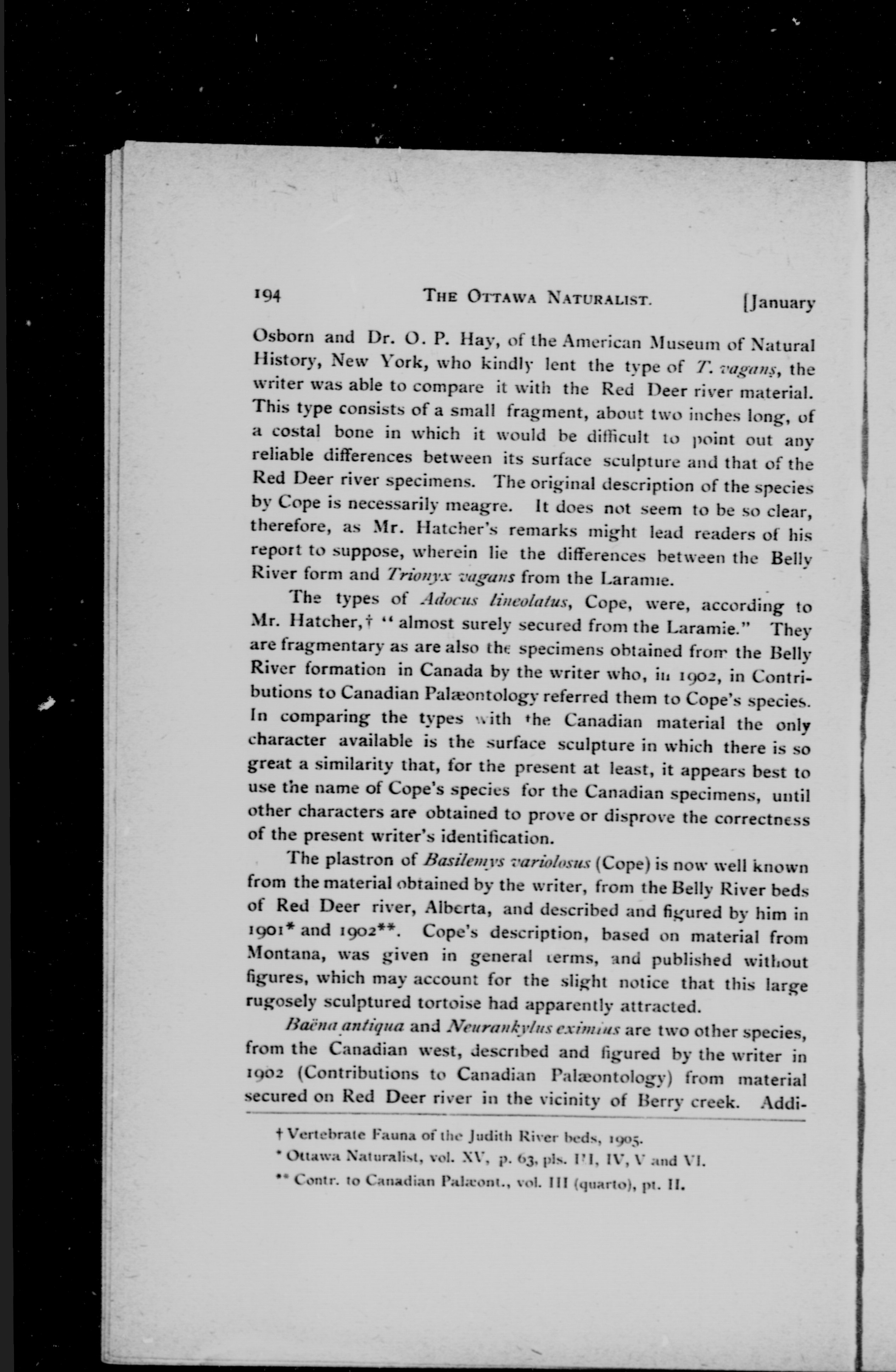 The Ottawa naturalist : Vol. 19, no. 10 (Jan. 1906)