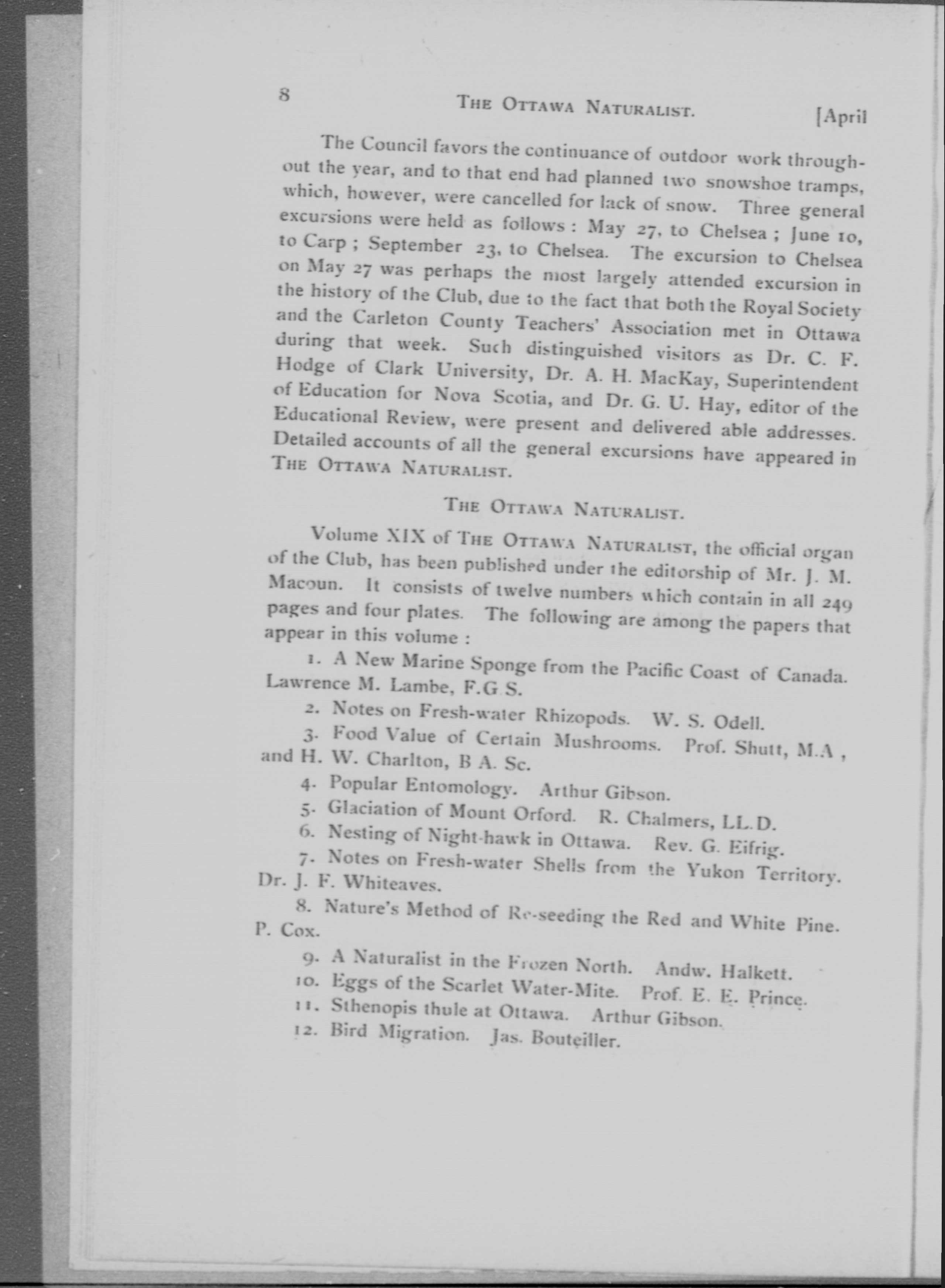 The Ottawa naturalist : Vol. 20, no. 1 (Apr. 1906)