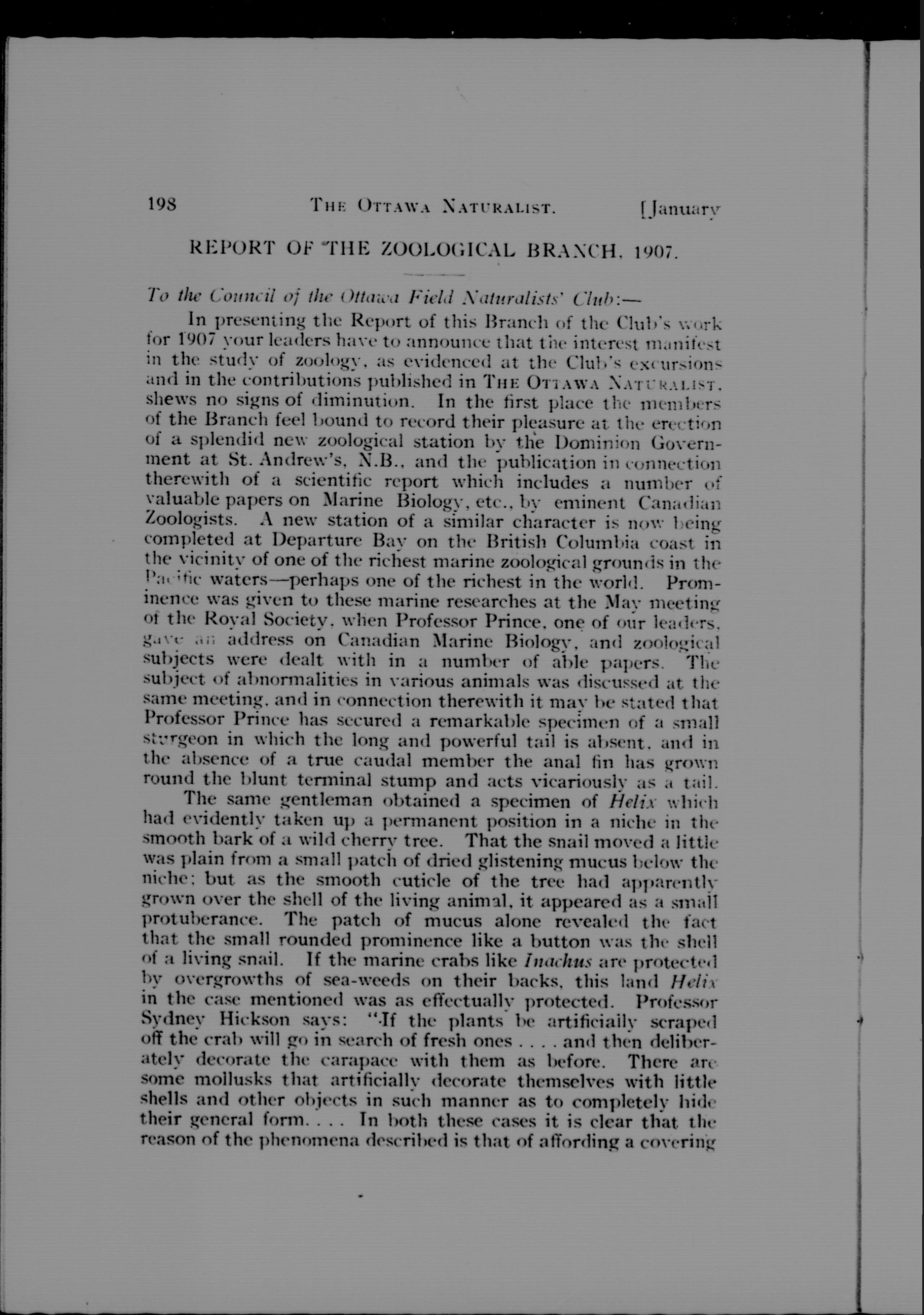The Ottawa naturalist : Vol. 21, no. 10 (Jan. 1908)