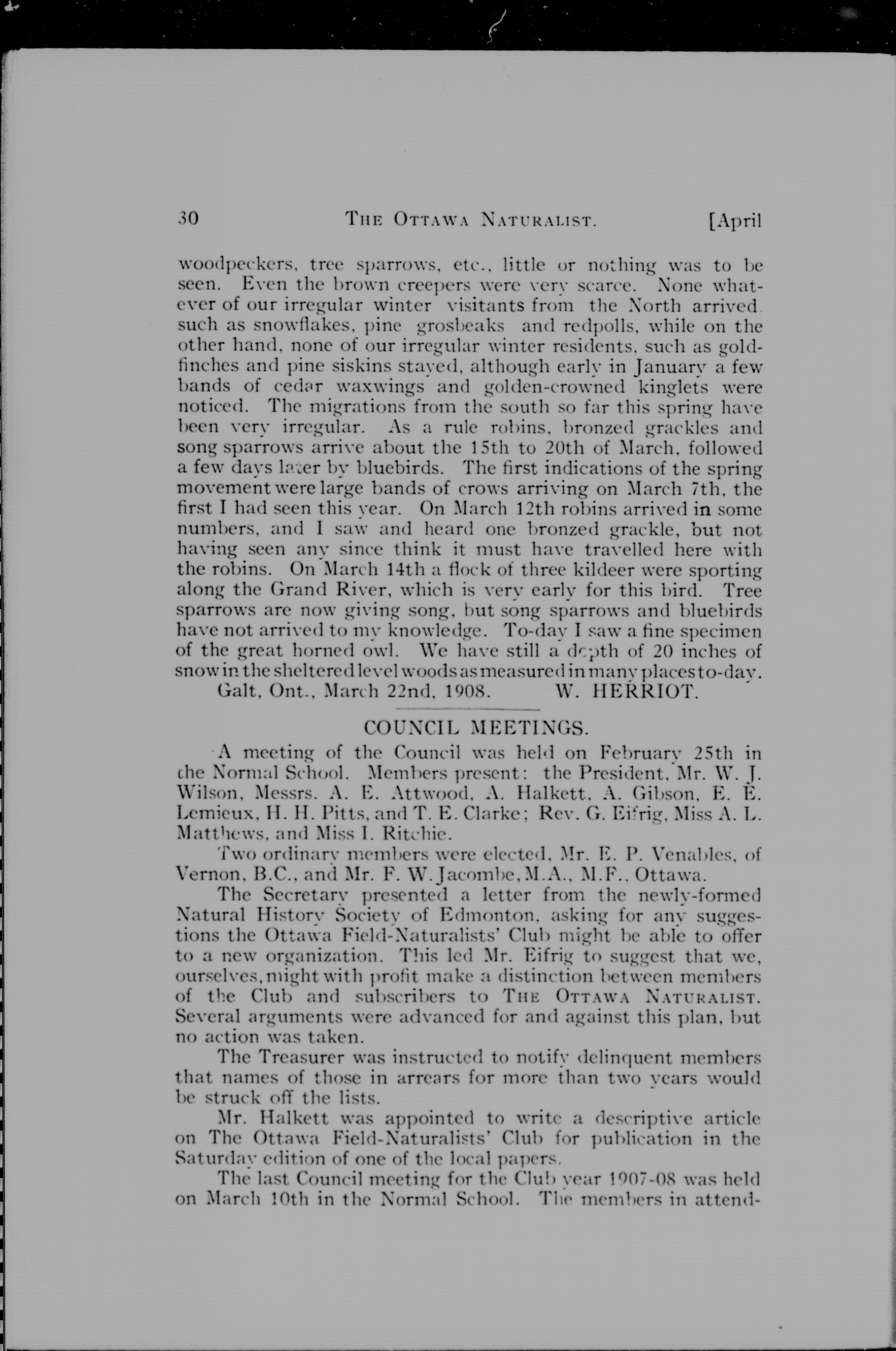 The Ottawa naturalist : Vol. 22, no. 1 (Apr. 1908)