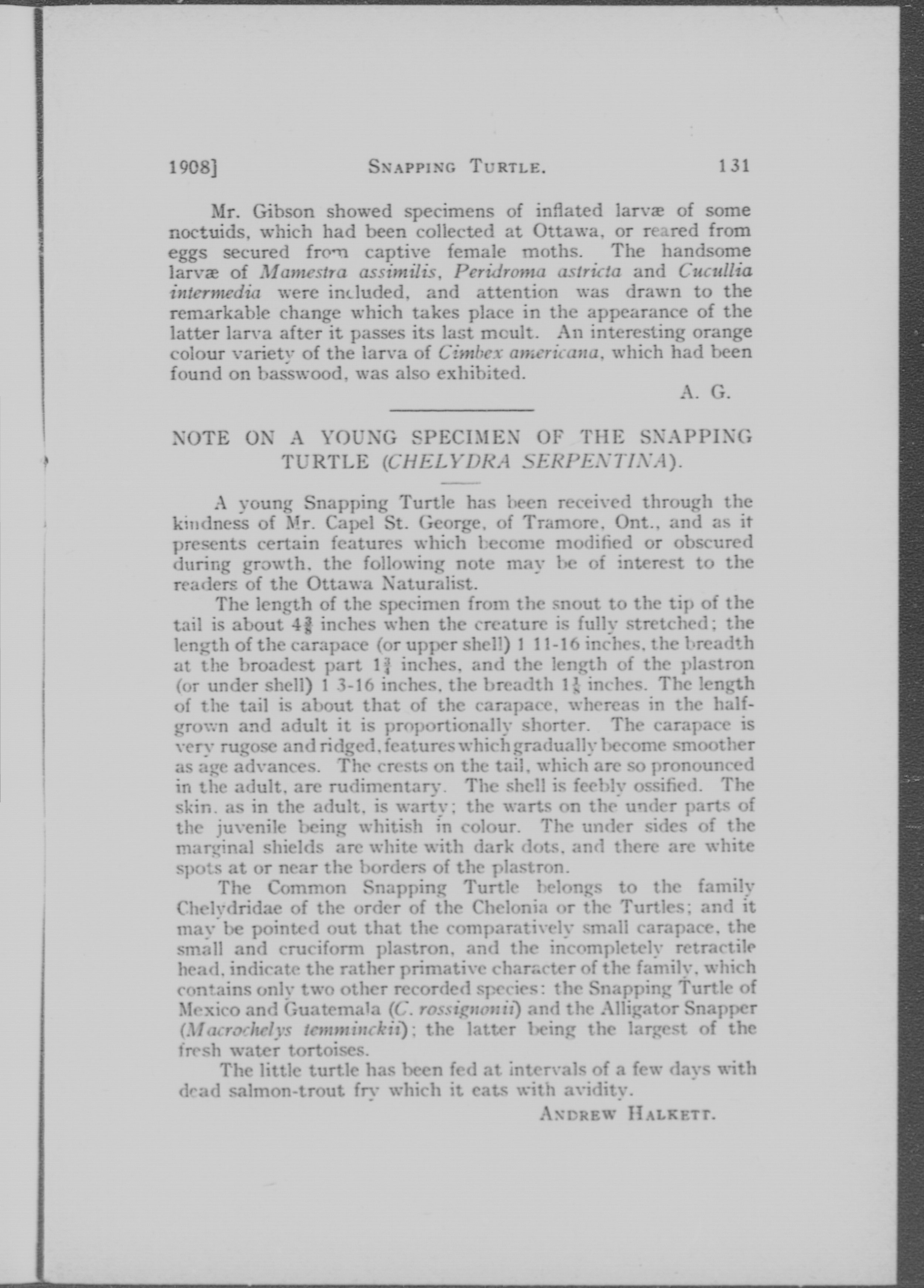 The Ottawa naturalist : Vol. 22, no. 7 (Oct. 1908)