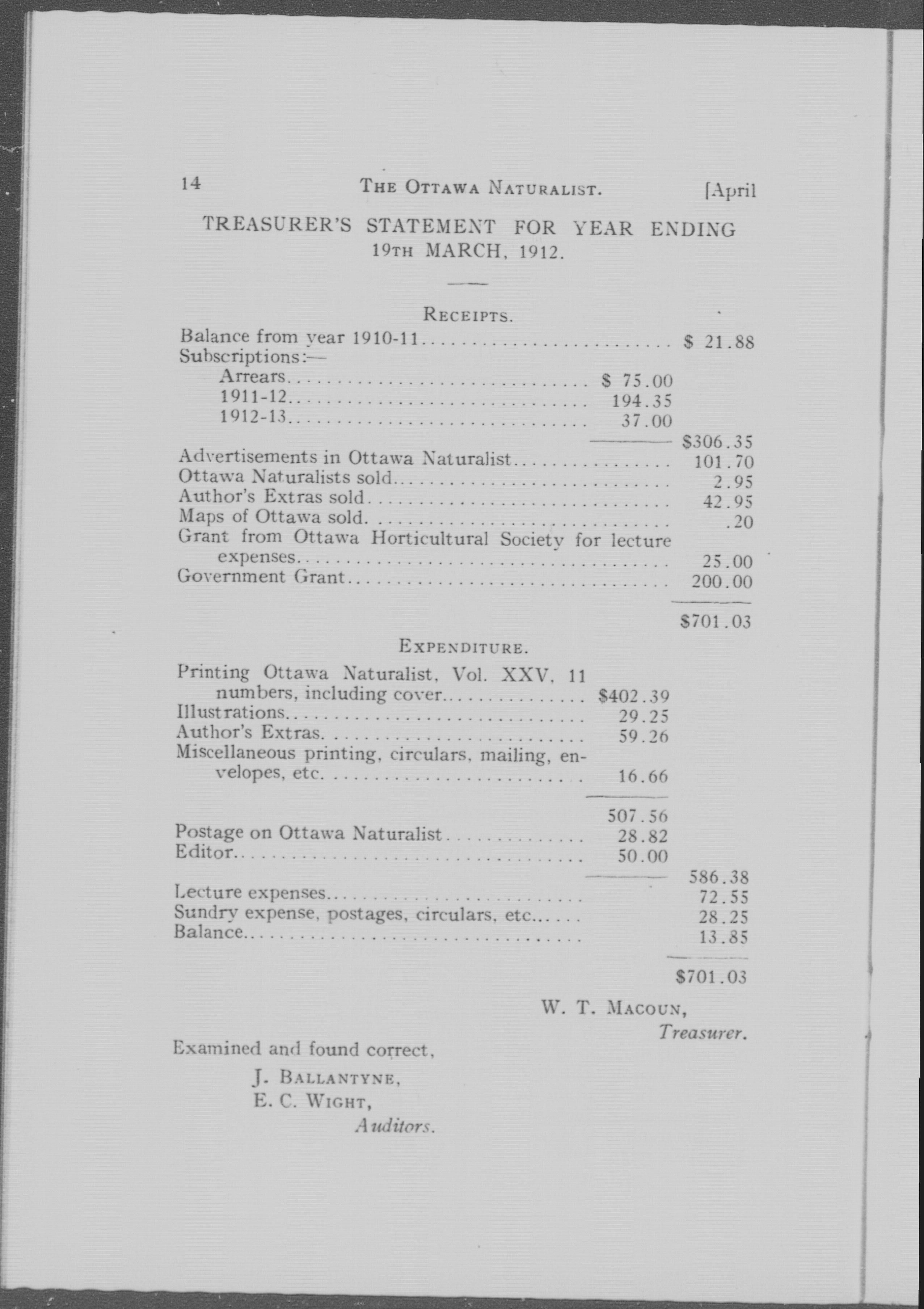 The Ottawa naturalist : Vol. 26, no. 1 (Apr. 1912)