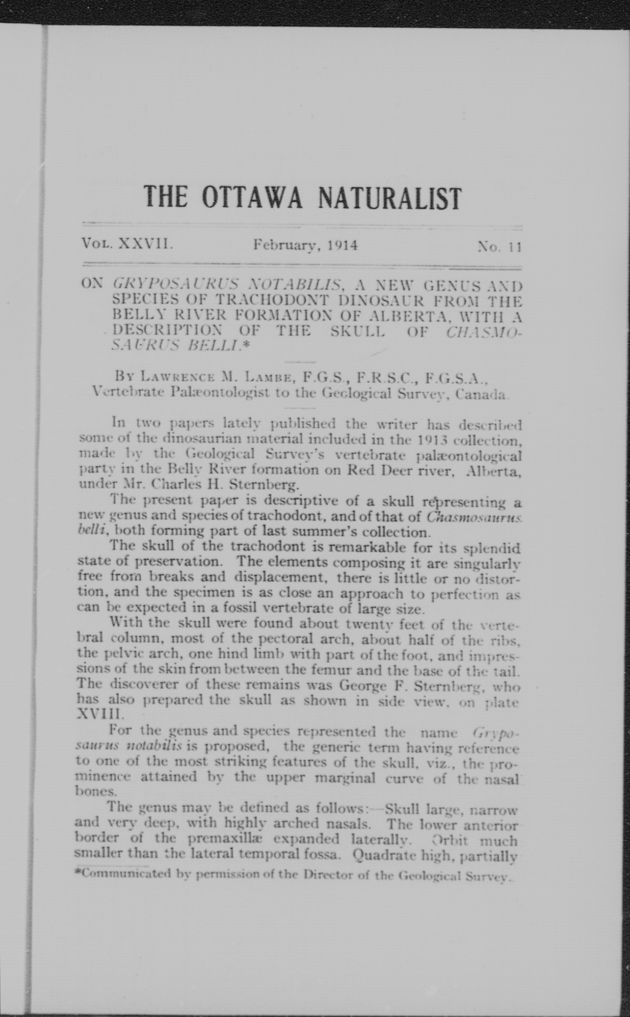 The Ottawa naturalist : Vol. 27, no. 11 (Feb. 1914)