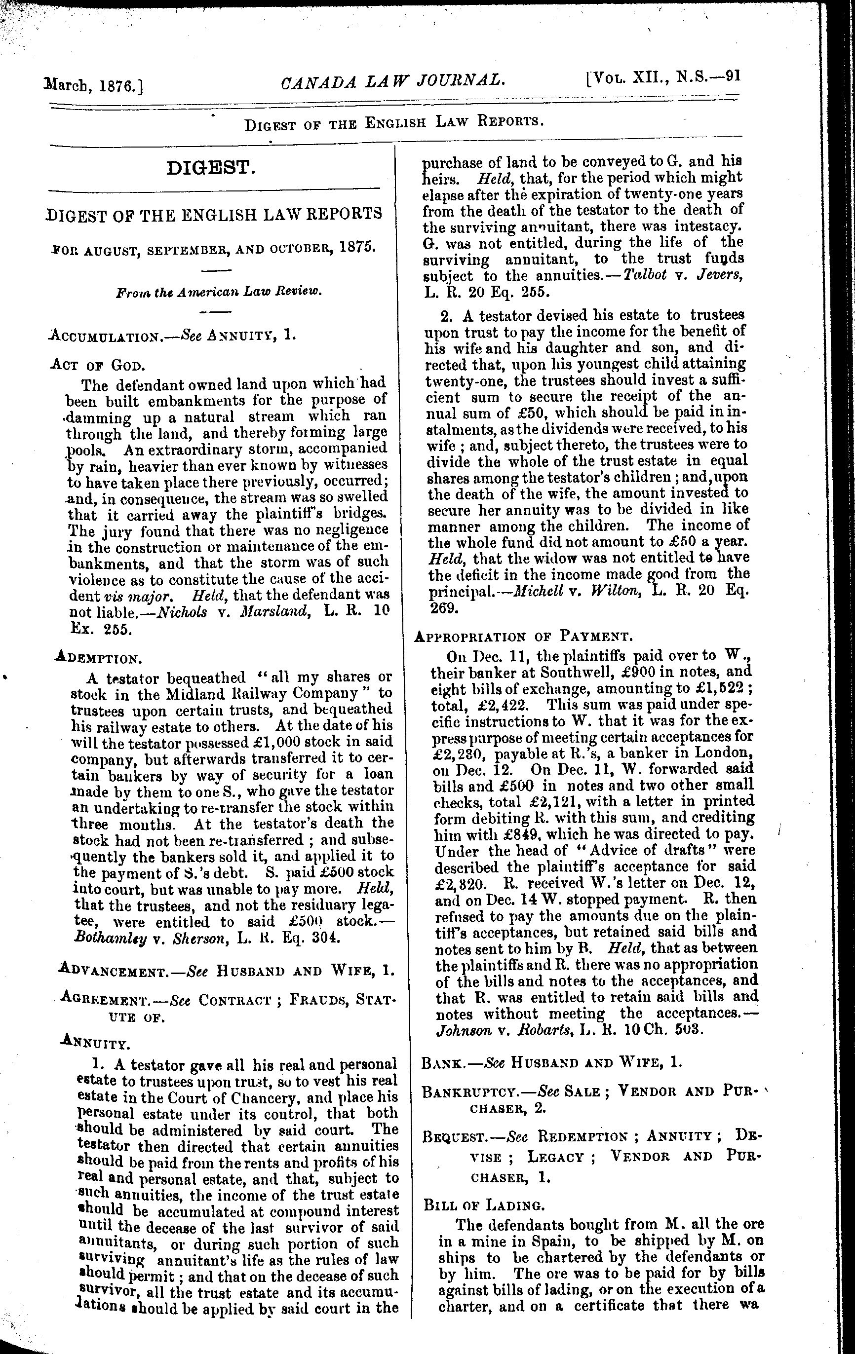 - The Canada law journal [New ser. v. 12, [no. 3], pt. 2 (Mar. 1876)]