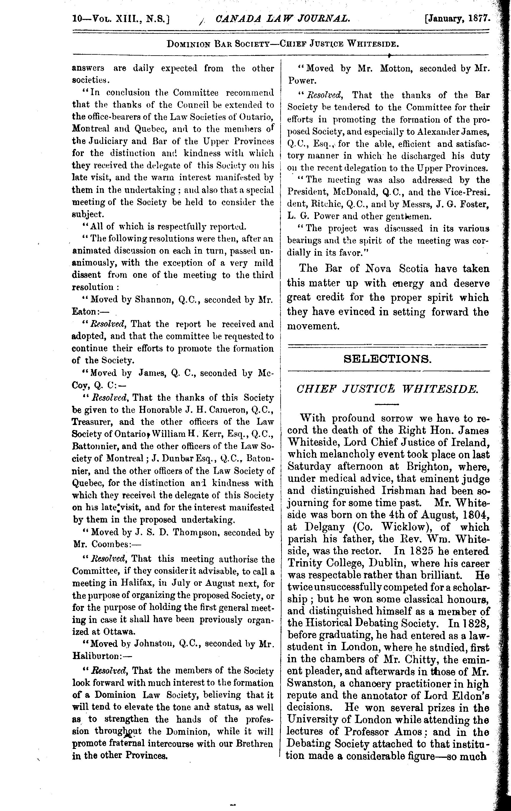 The Canada law journal [New ser. v. 13, [no. 1] (Jan. 1877)]