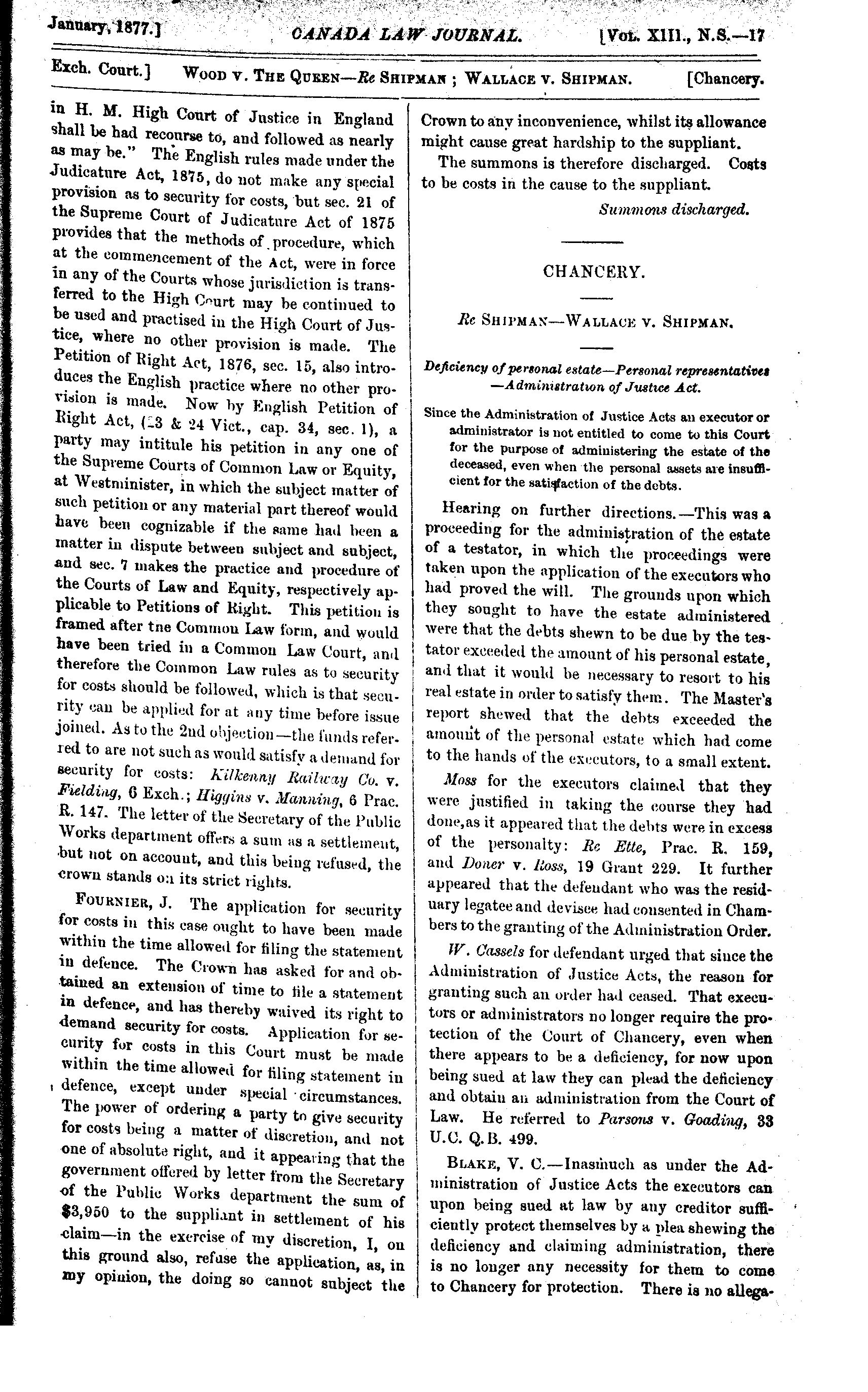 The Canada law journal [New ser. v. 13, [no. 1] (Jan. 1877)]