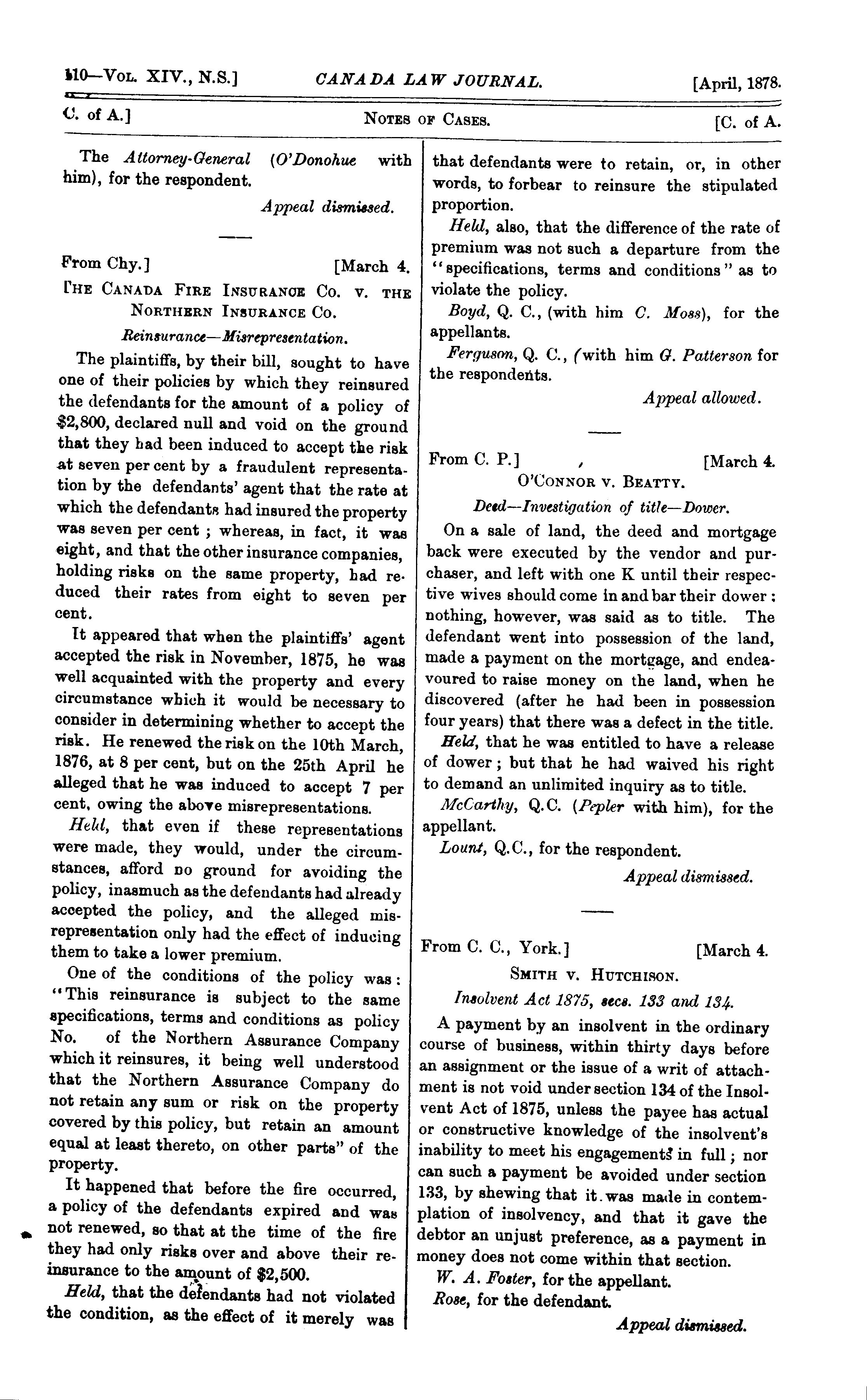 - Canada law journal [New ser. v. 14, [no. 4], pt. 1 (Apr. 1878)]