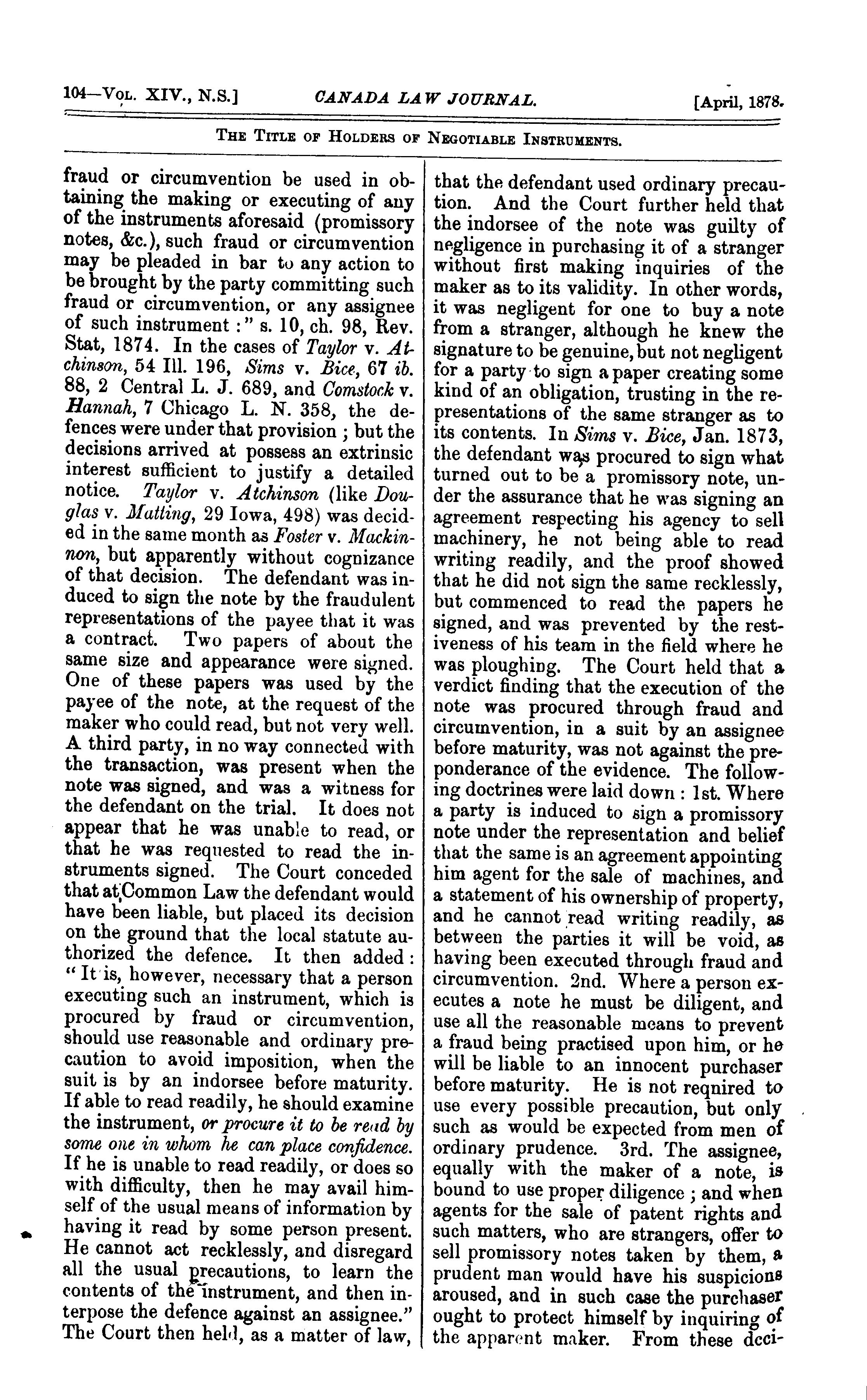 Canada law journal [New ser. v. 14, [no. 4], pt. 1 (Apr. 1878)]