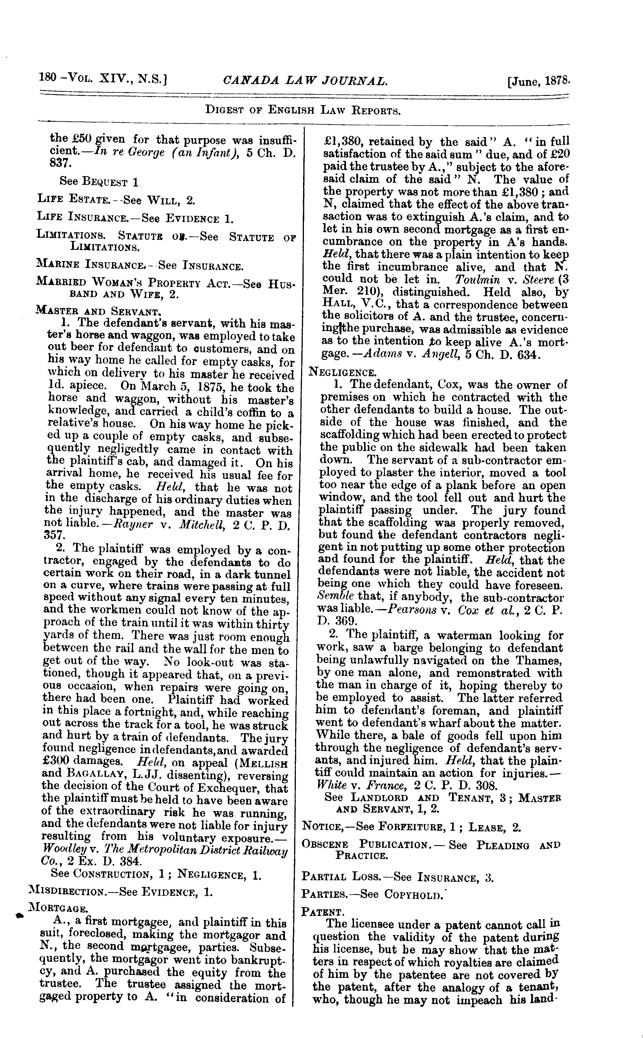Canada law journal [New ser. v. 14, [no. 6] (June 1878)]