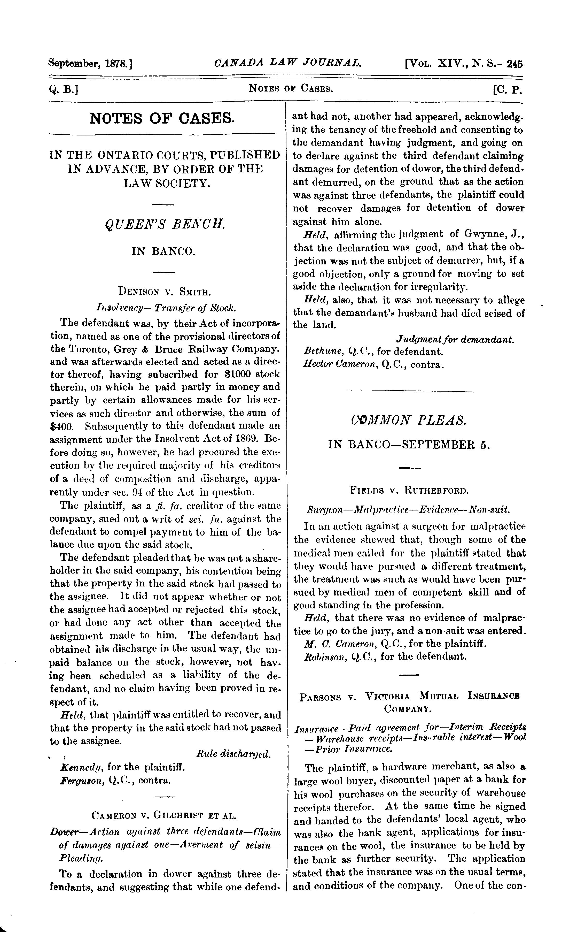 - Canada law journal [New ser. v. 14, [no. 9] (Sept. 1878)]
