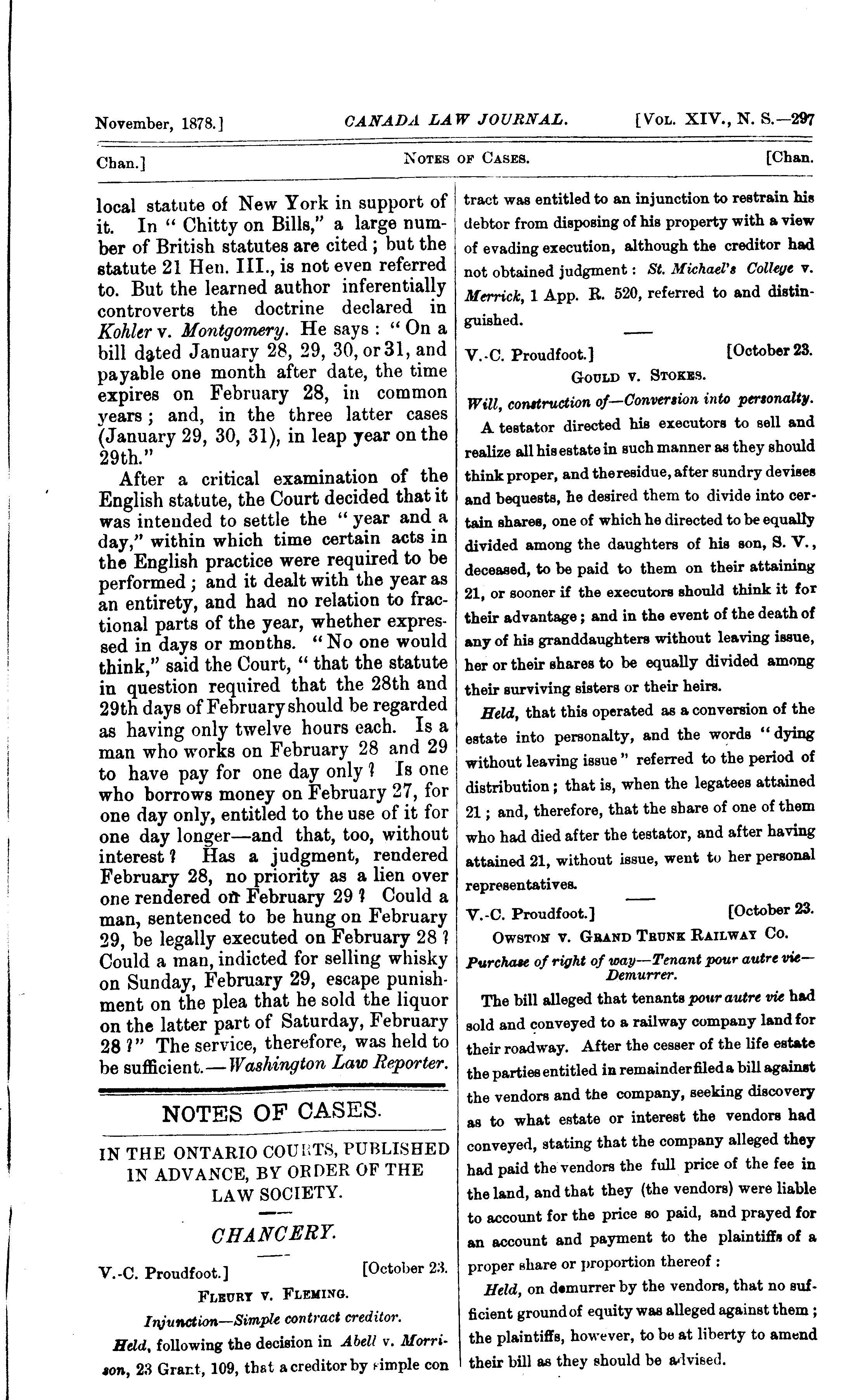 Canada law journal [New ser. v. 14, [no. 11] (Nov. 1878)]
