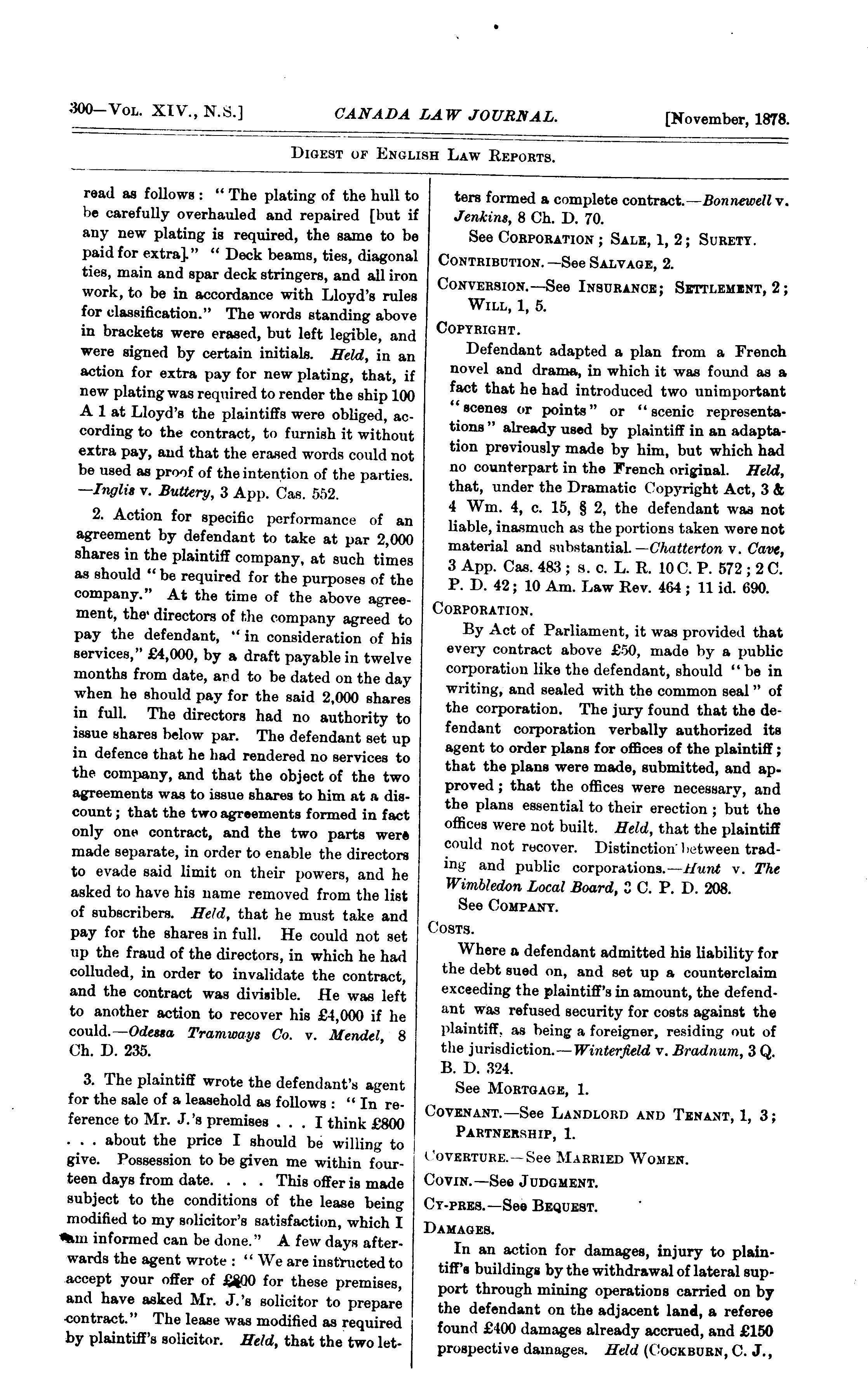 Canada law journal [New ser. v. 14, [no. 11] (Nov. 1878)]