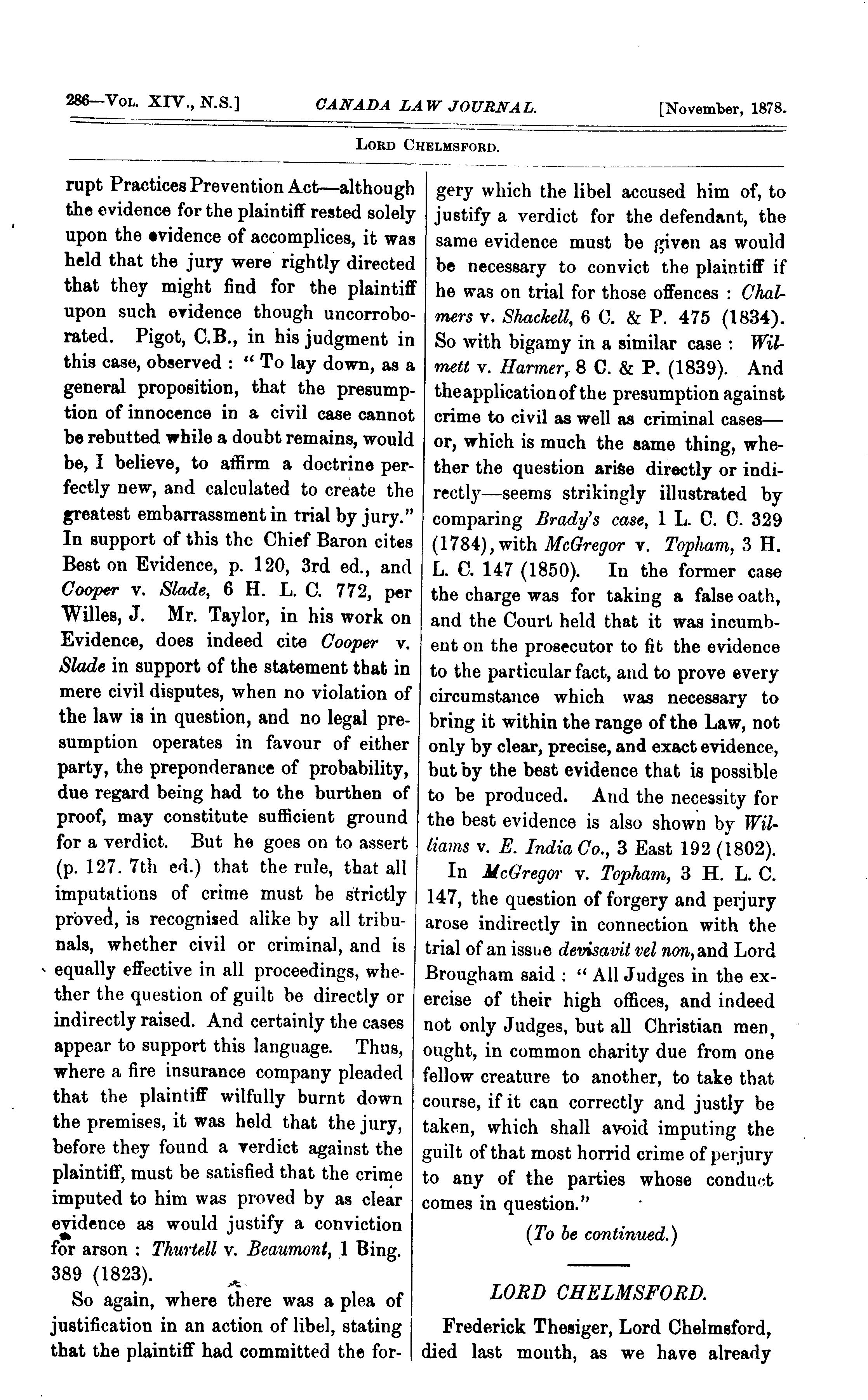 Canada law journal [New ser. v. 14, [no. 11] (Nov. 1878)]