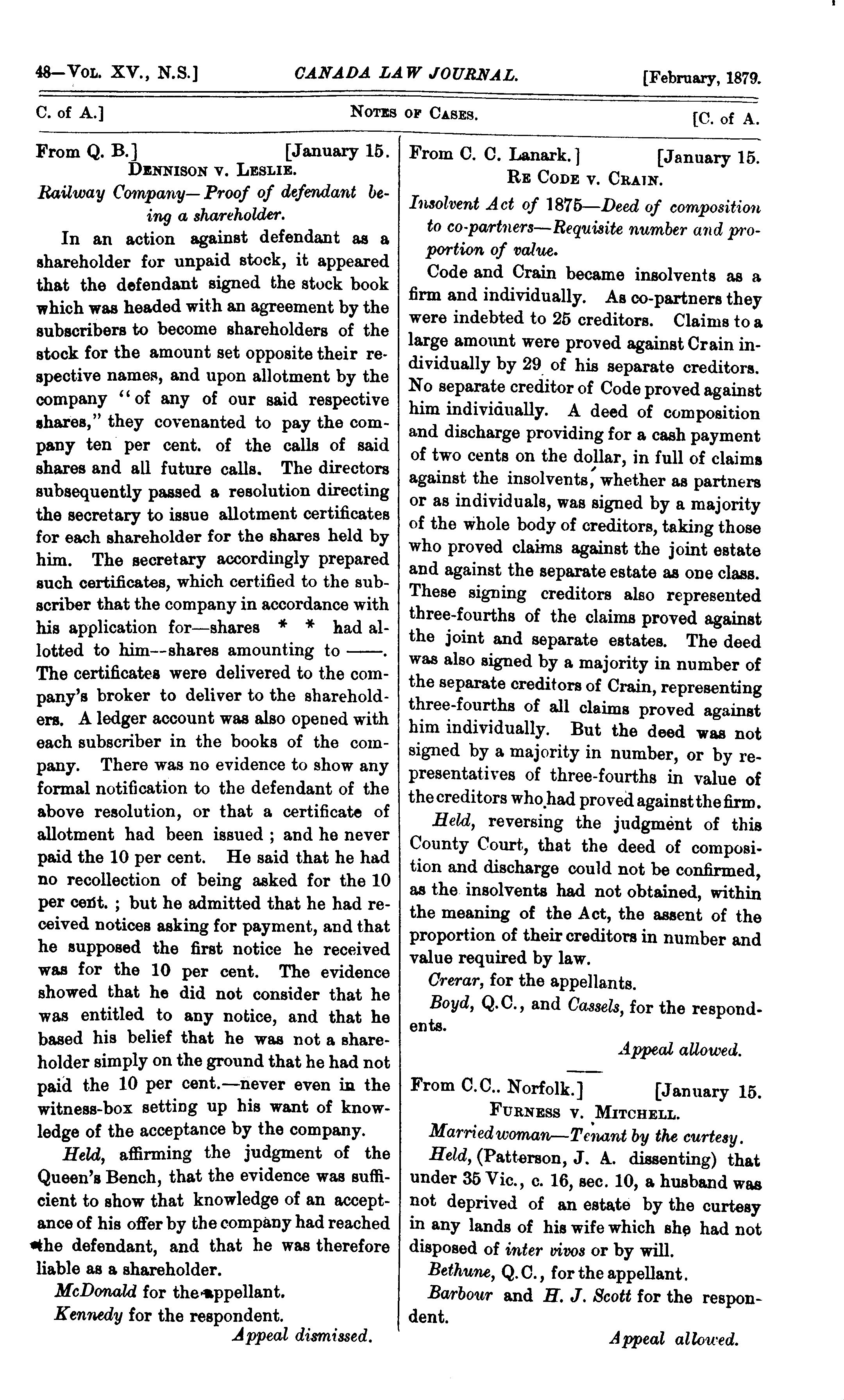 - Canada law journal [New ser. v. 15, [no. 2] (Feb. 1879)]