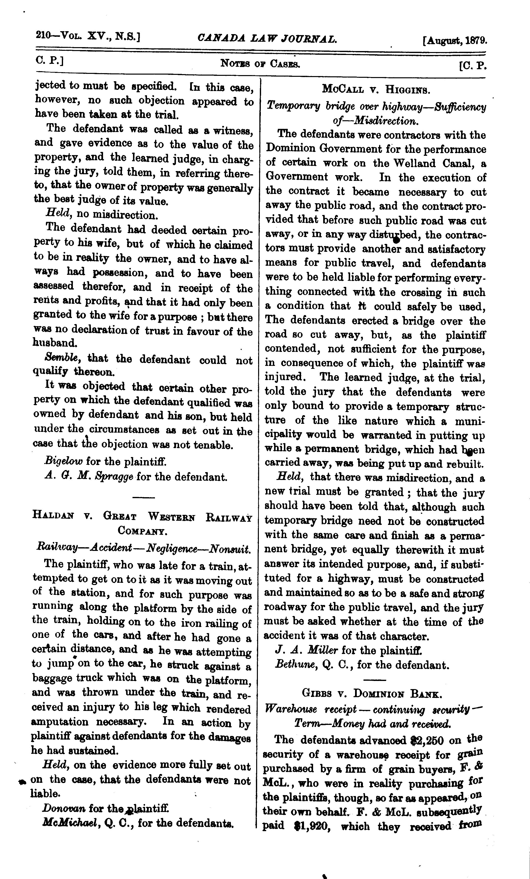 - Canada law journal [New ser. v. 15, [no. 8] (Aug. 1879)]