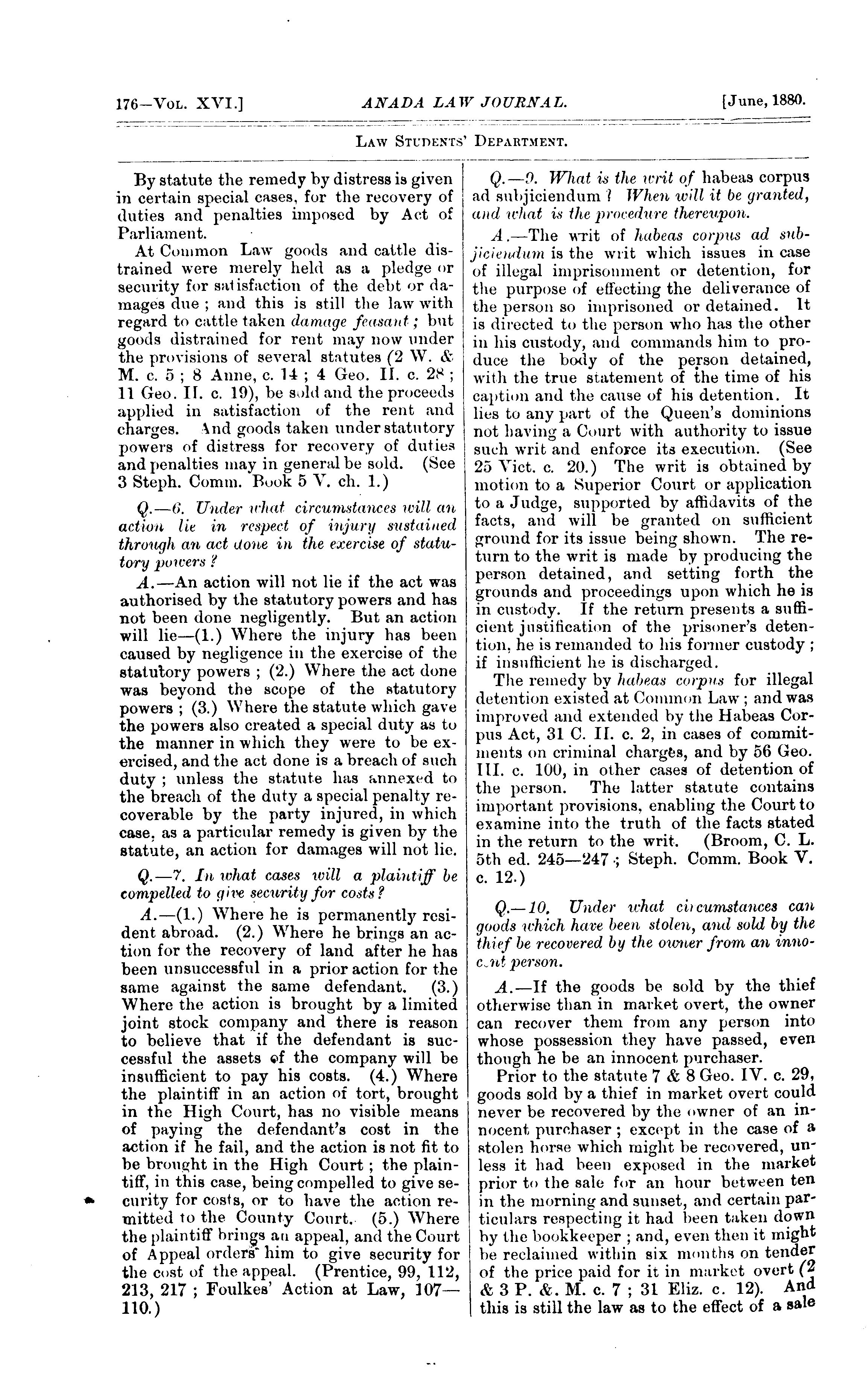 Canada law journal [Vol. 16, [no. 7] (June 1880)]