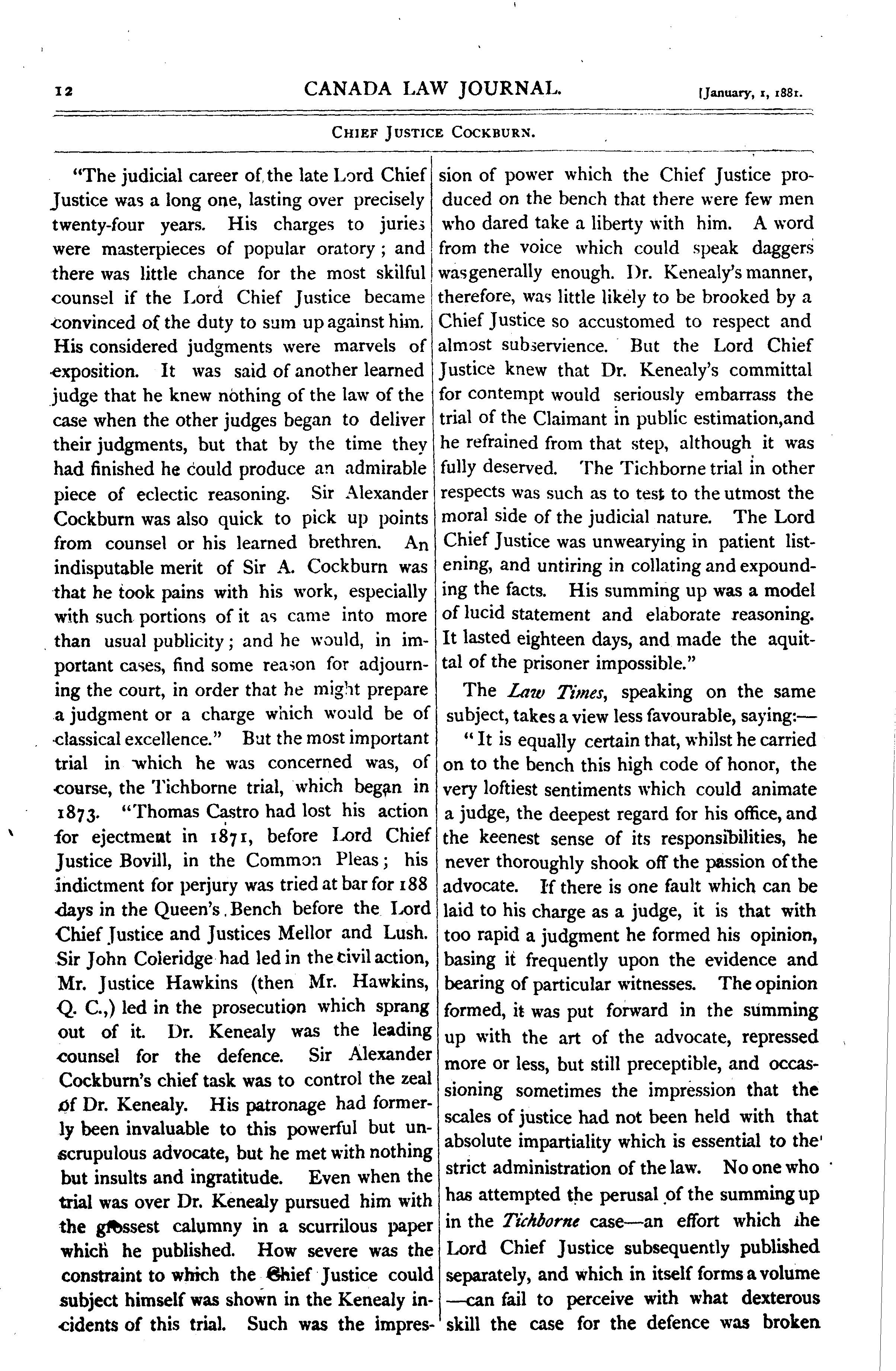 The Canada law journal : [i.e. 17], no. 1 (Jan. 1, 1881)]