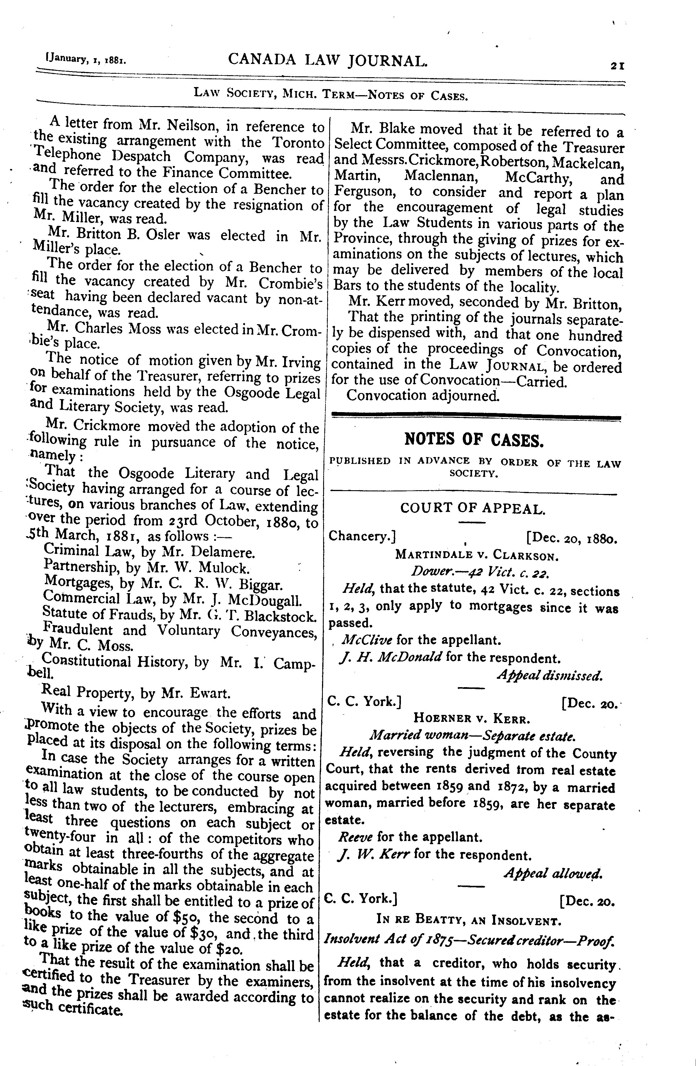 The Canada law journal : [i.e. 17], no. 1 (Jan. 1, 1881)]