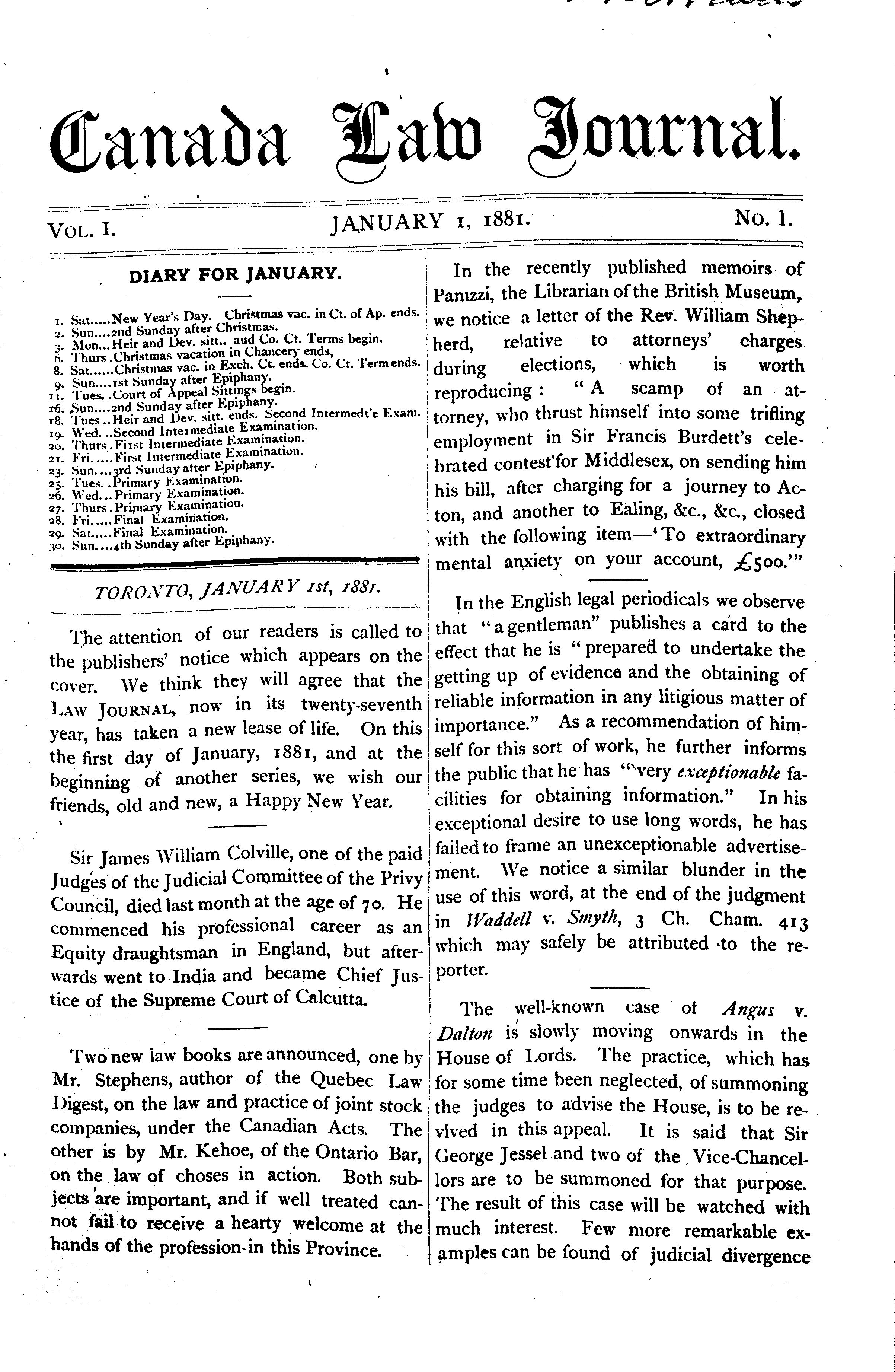 The Canada law journal : [i.e. 17], no. 1 (Jan. 1, 1881)]