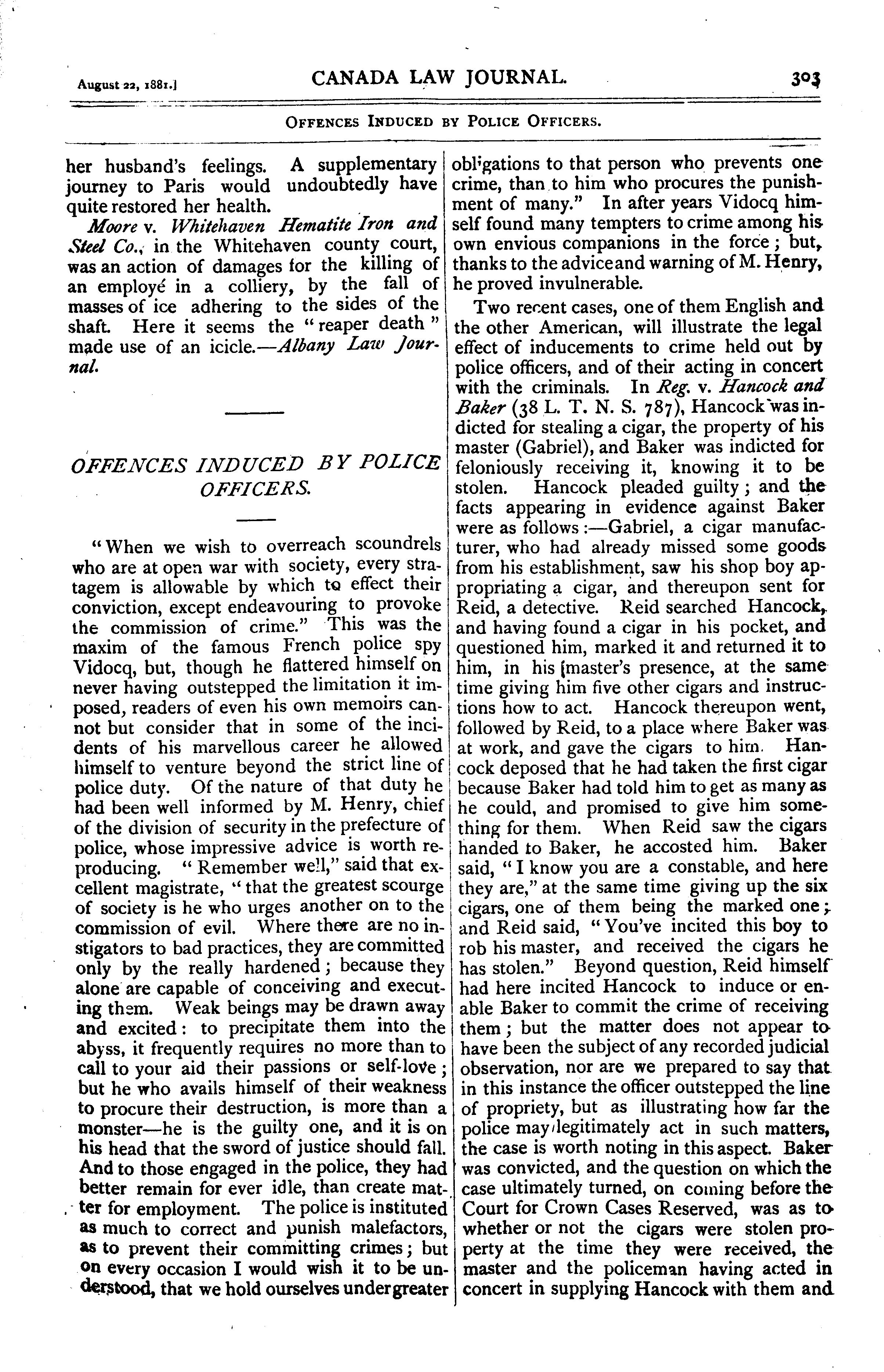 - Canada law journal [Vol. 17, no. 15 (Aug. 22, 1881)]