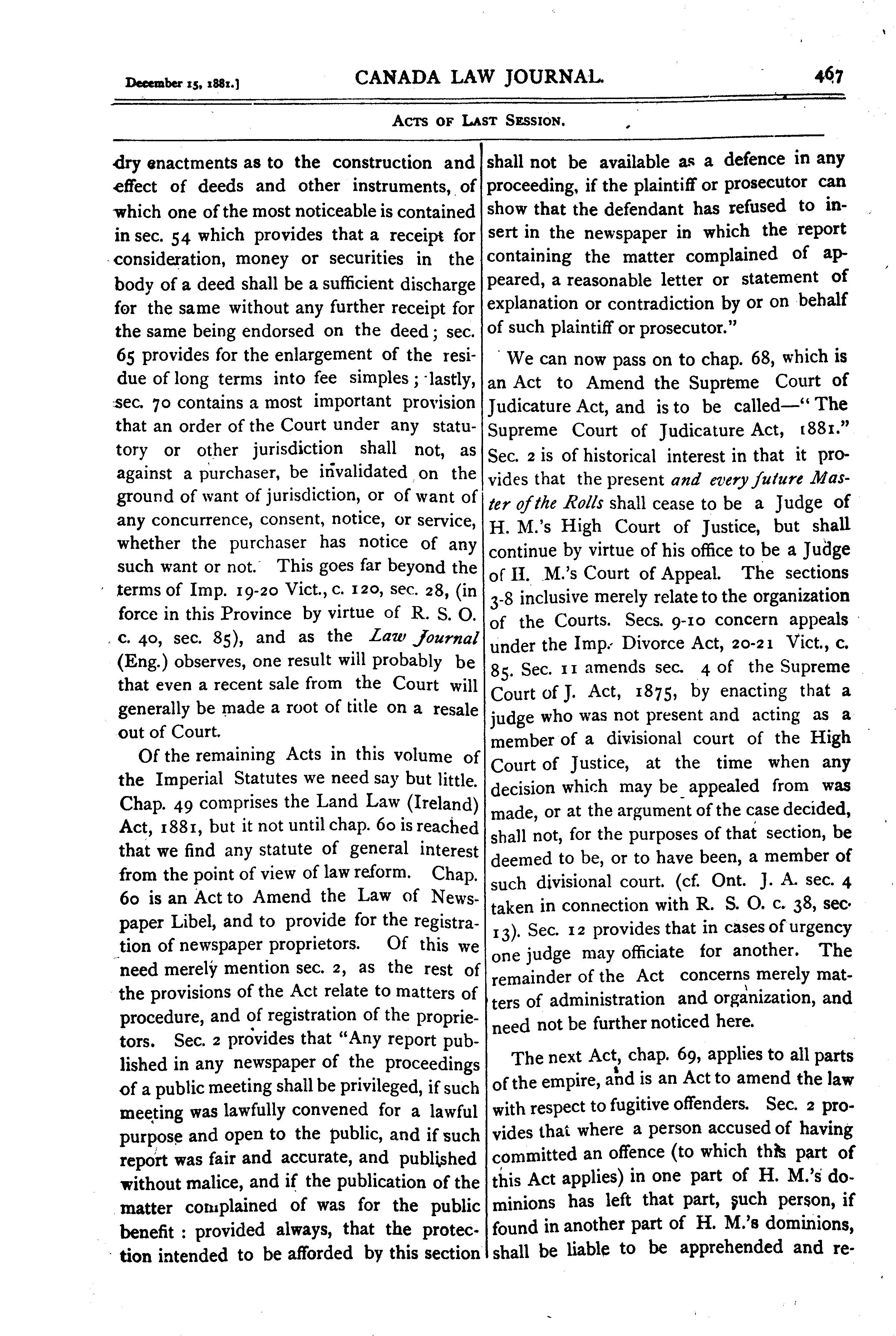 - Canada law journal [Vol. 17, no. 23 (Dec. 15, 1881)]