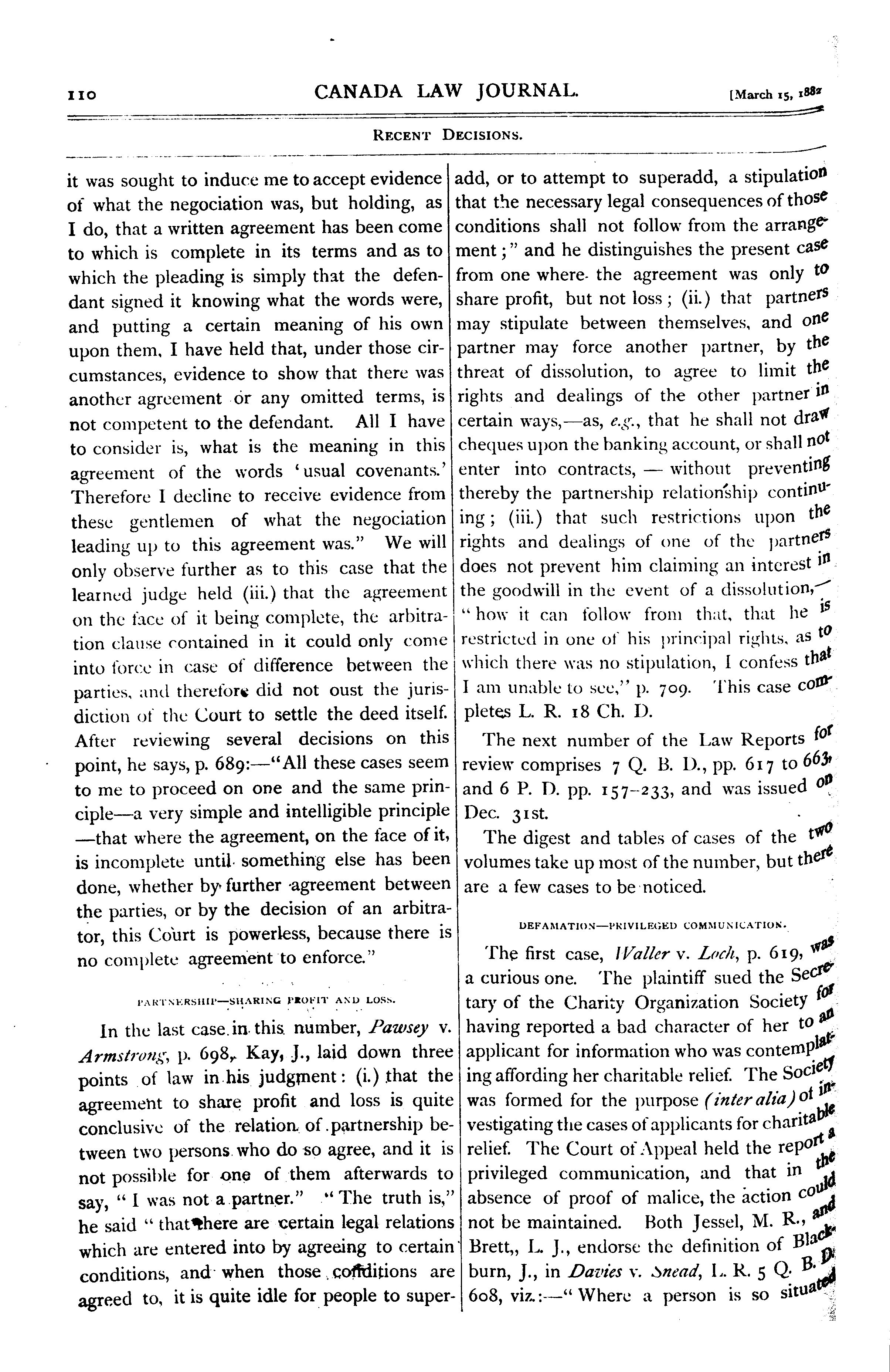 - Canada law journal [Vol. 18, no. 6 (Mar. 15, 1882)]