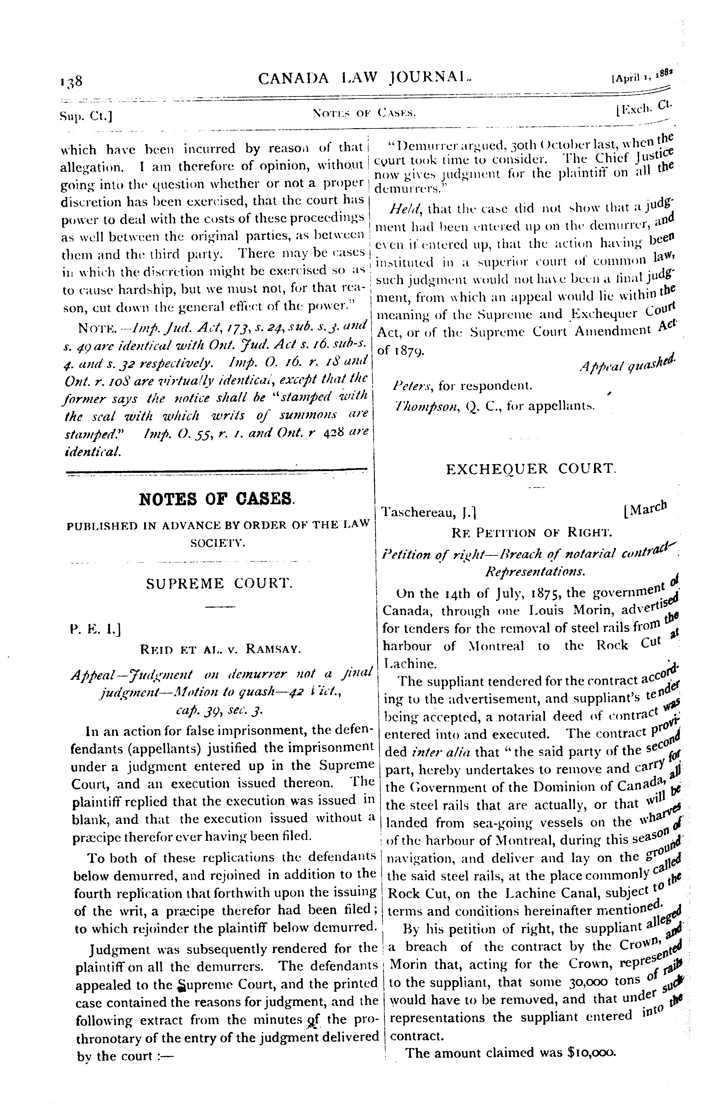 - Canada law journal [Vol. 18, no. 7 (Apr. 1, 1882)]