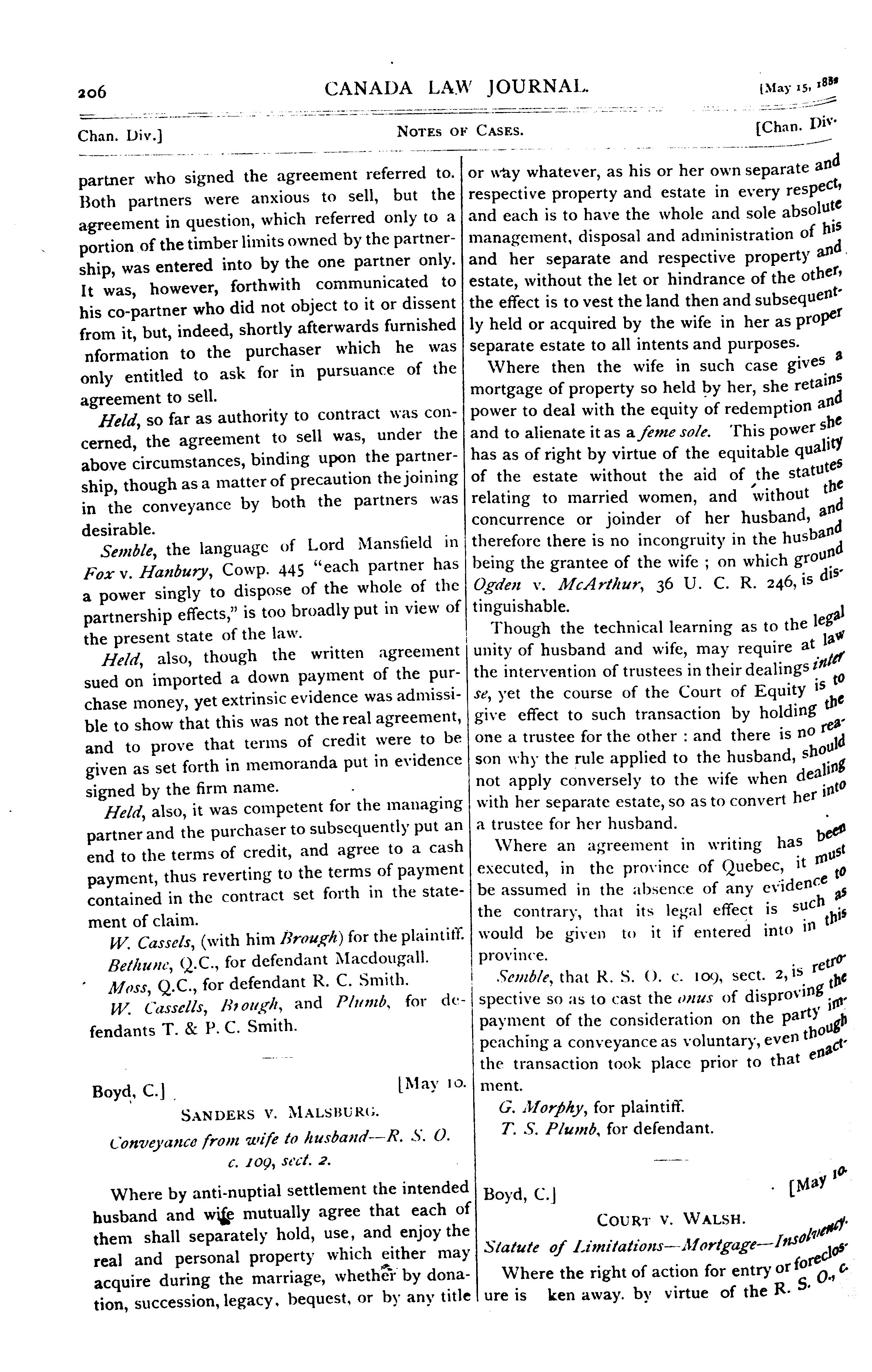 The Canada law journal : [Vol. 18, no. 10 (May 15, 1882)]