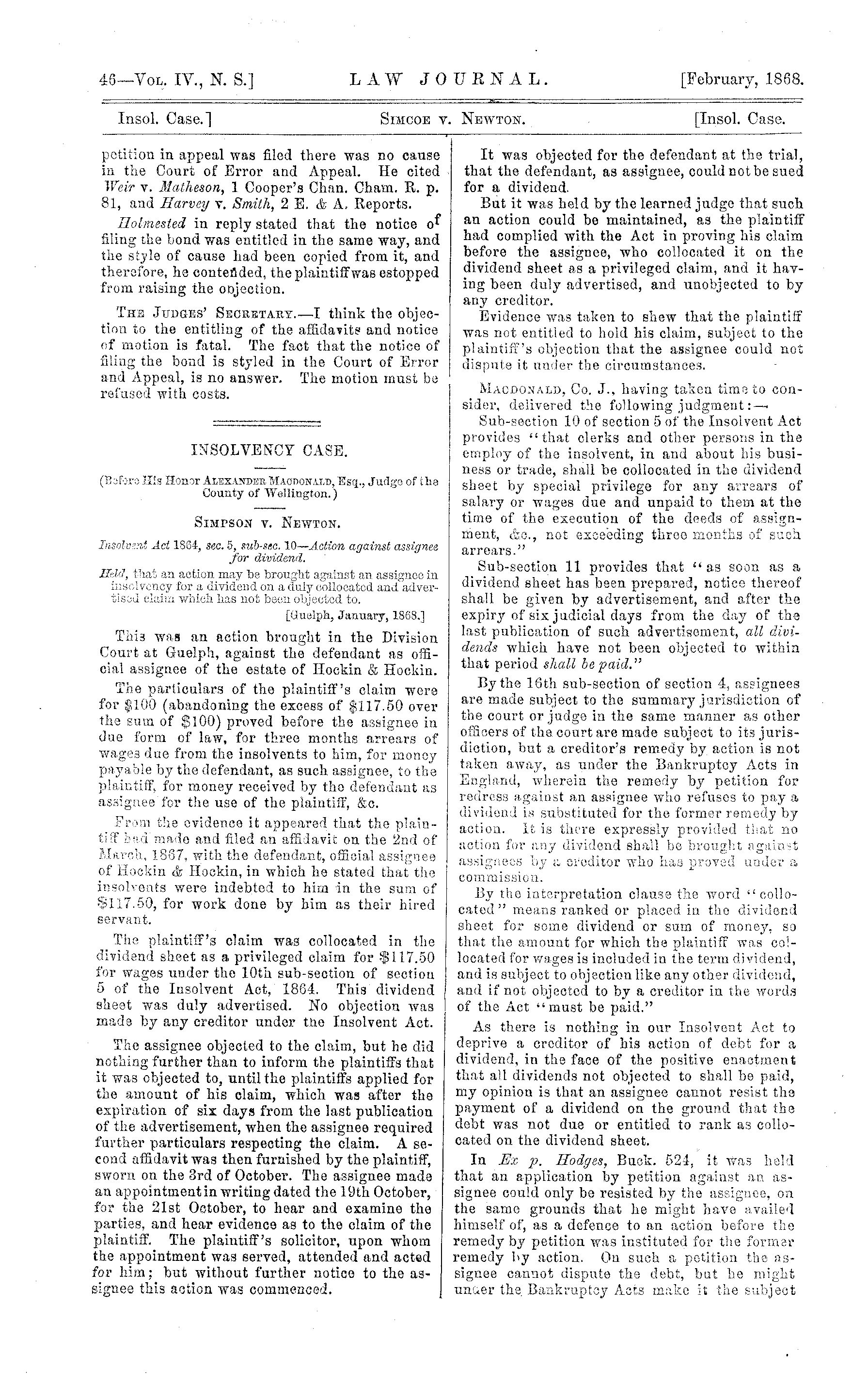 The Canada law journal [New ser. v. 4, [no. 2] (Feb. 1868)]