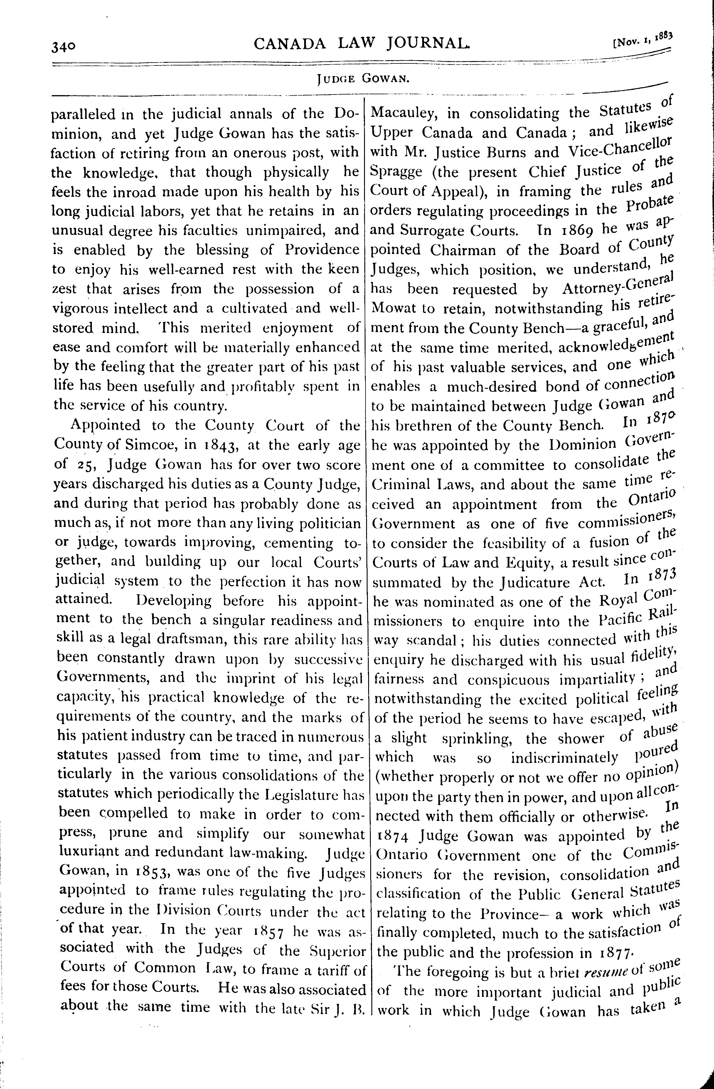- Canada law journal [Vol. 19, no. 18 (Nov. 1, 1883)]