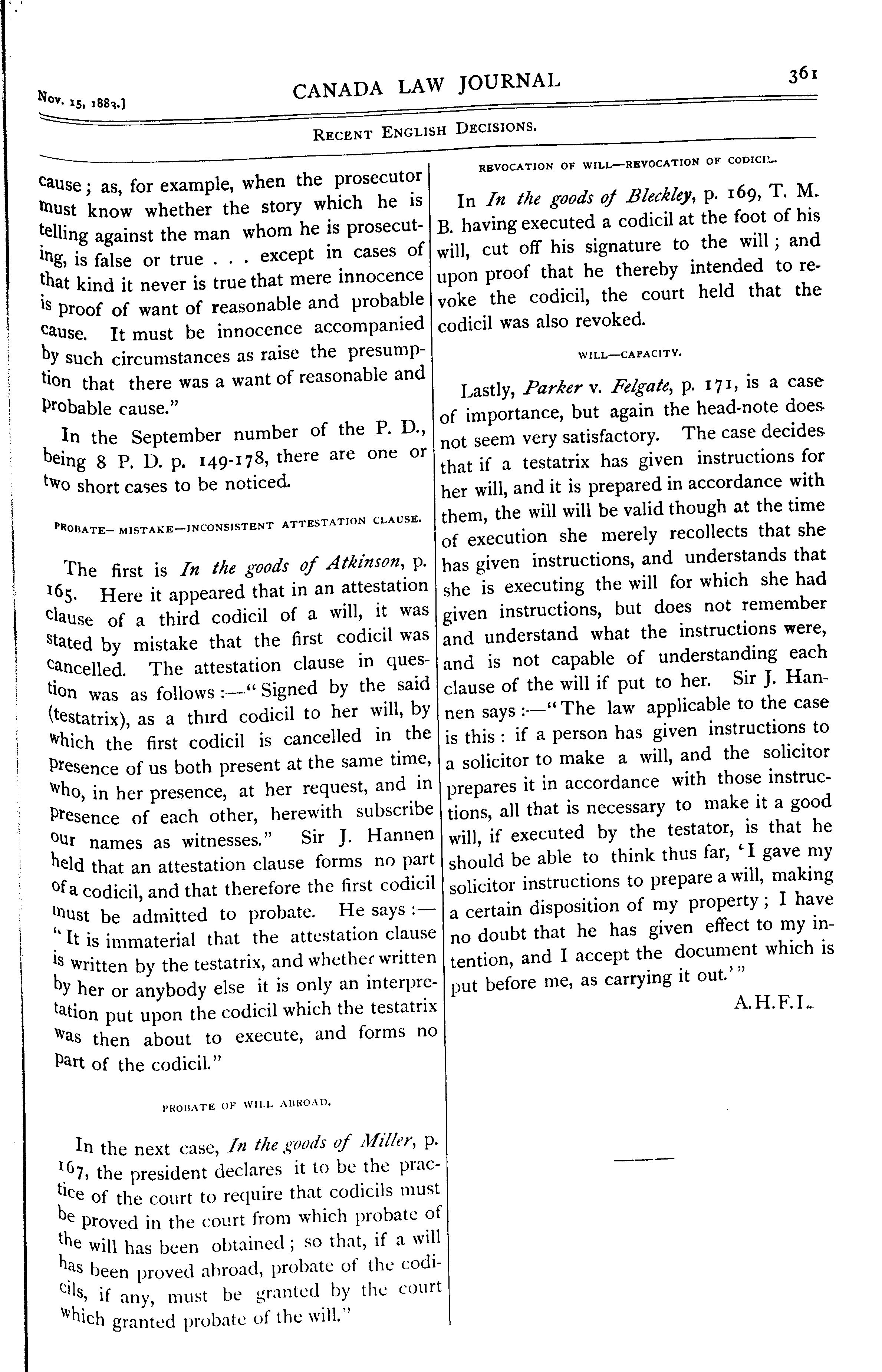 Canada law journal [Vol. 19, no. 19 (Nov. 15, 1883)]