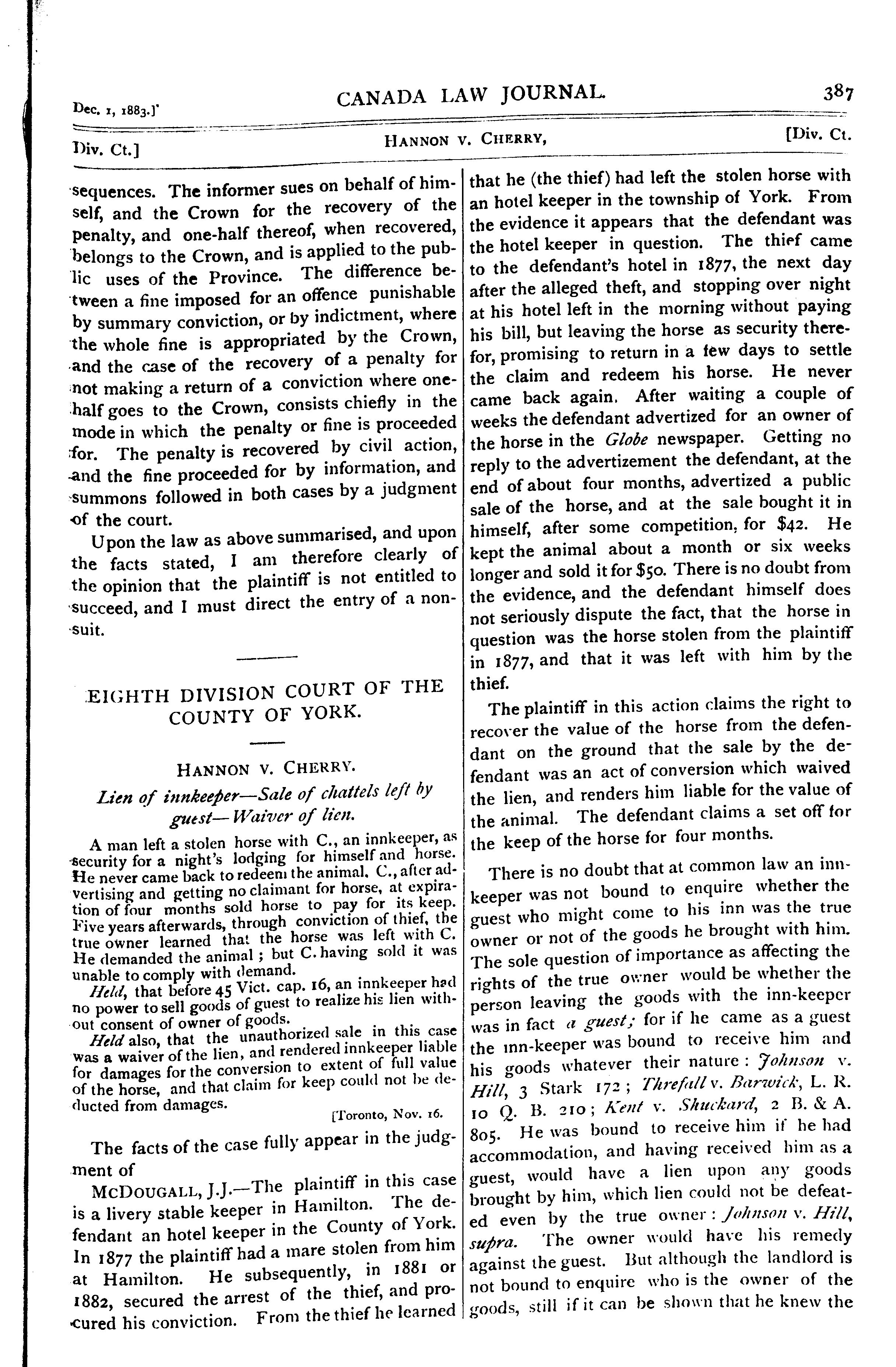 - Canada law journal [Vol. 19, no. 20 (Dec. 1, 1883)]