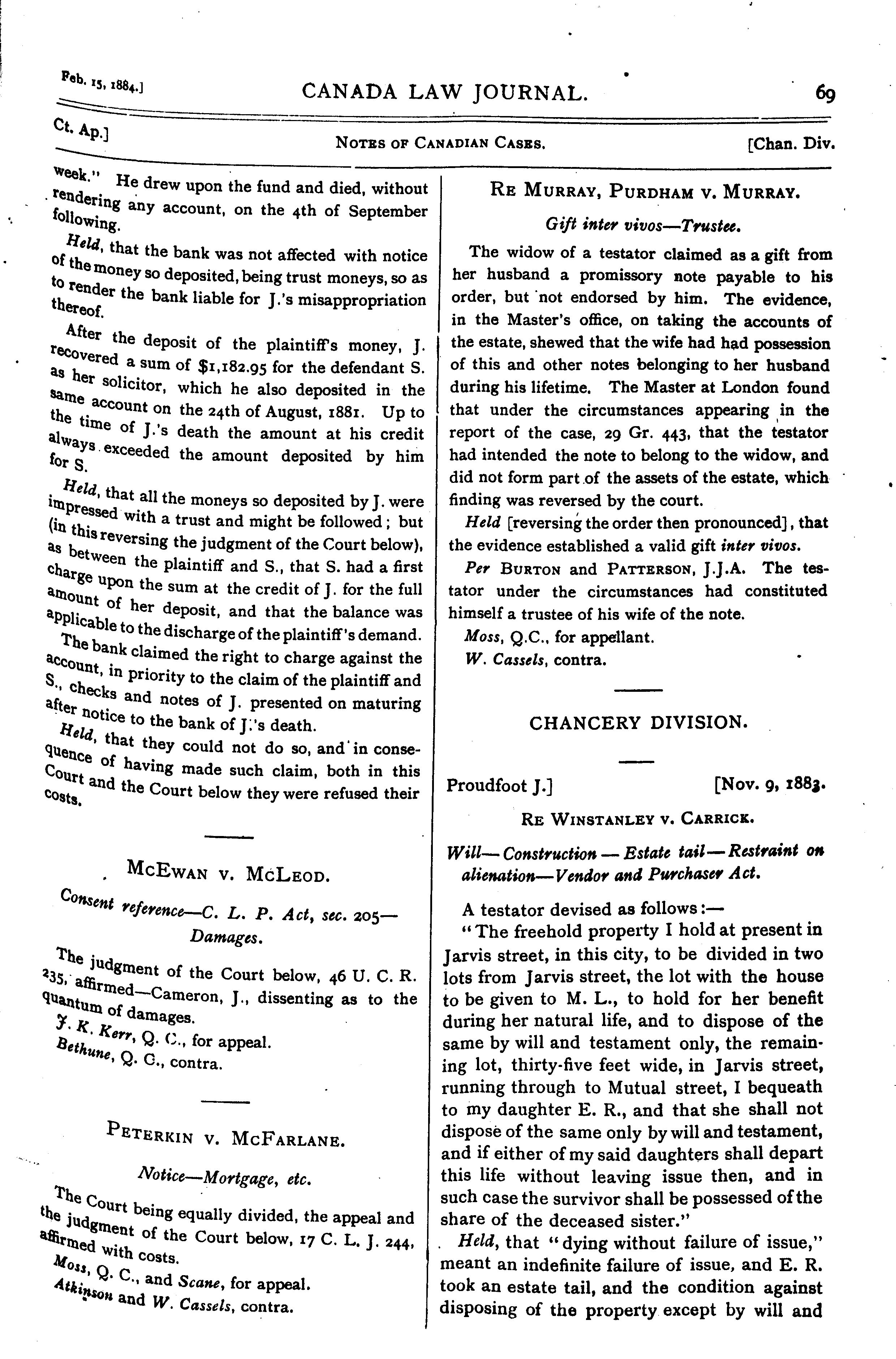Canada law journal [Vol. 20, no. 4 (Feb. 15, 1884)]