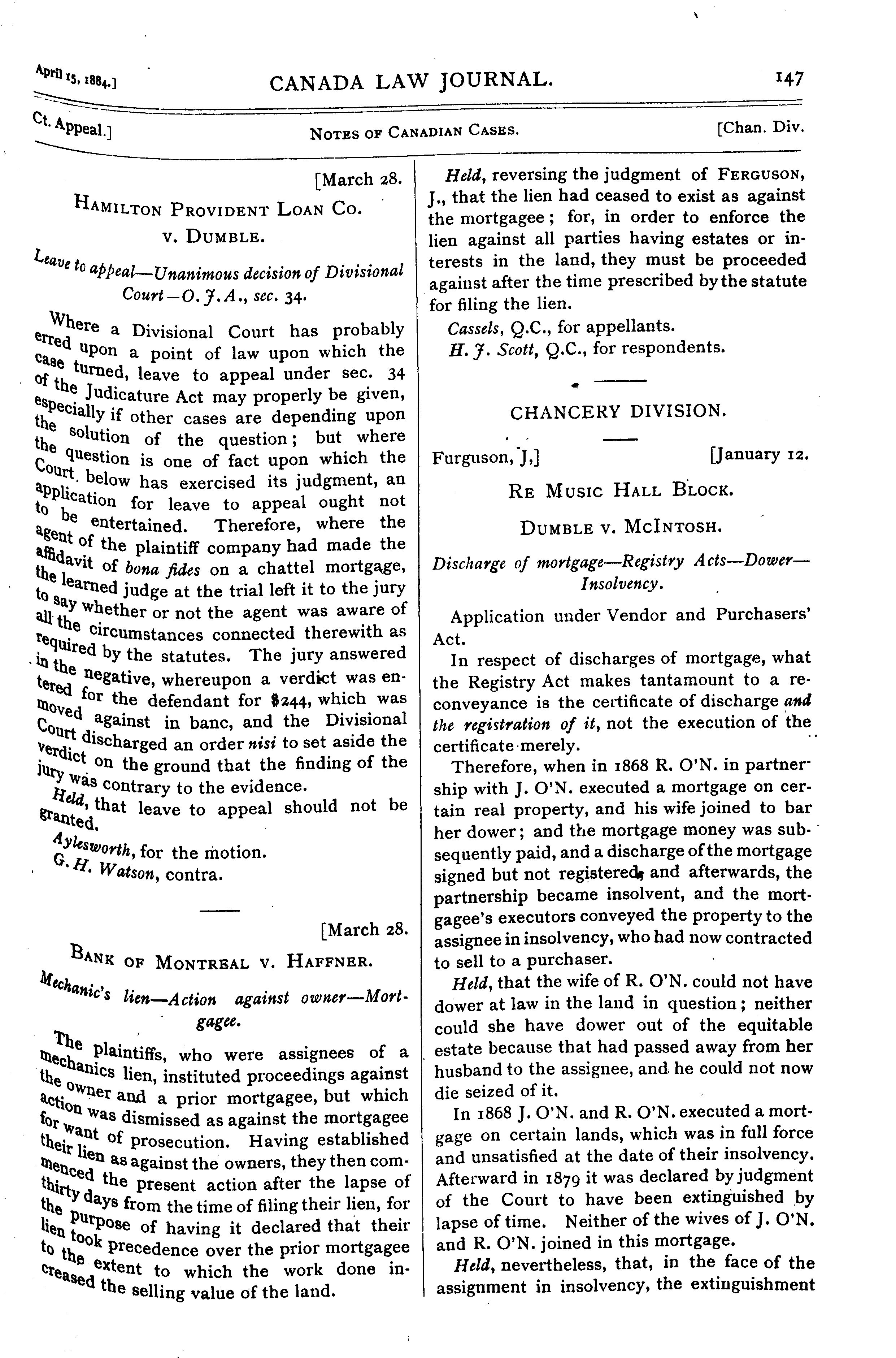 The Canada law journal : [Vol. 20, no. 8 (Apr. 15, 1884)]