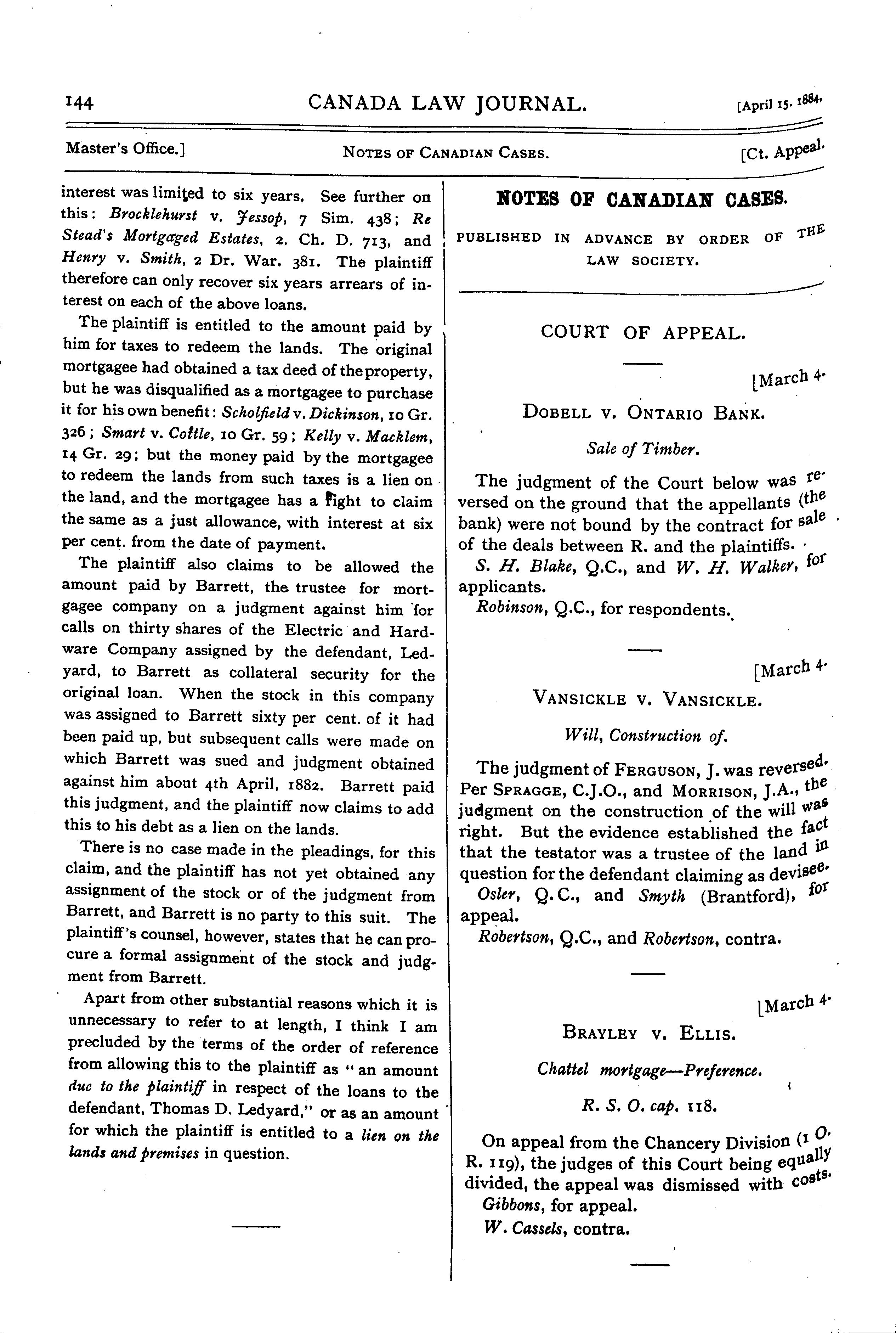 - Canada law journal [Vol. 20, no. 8 (Apr. 15, 1884)]