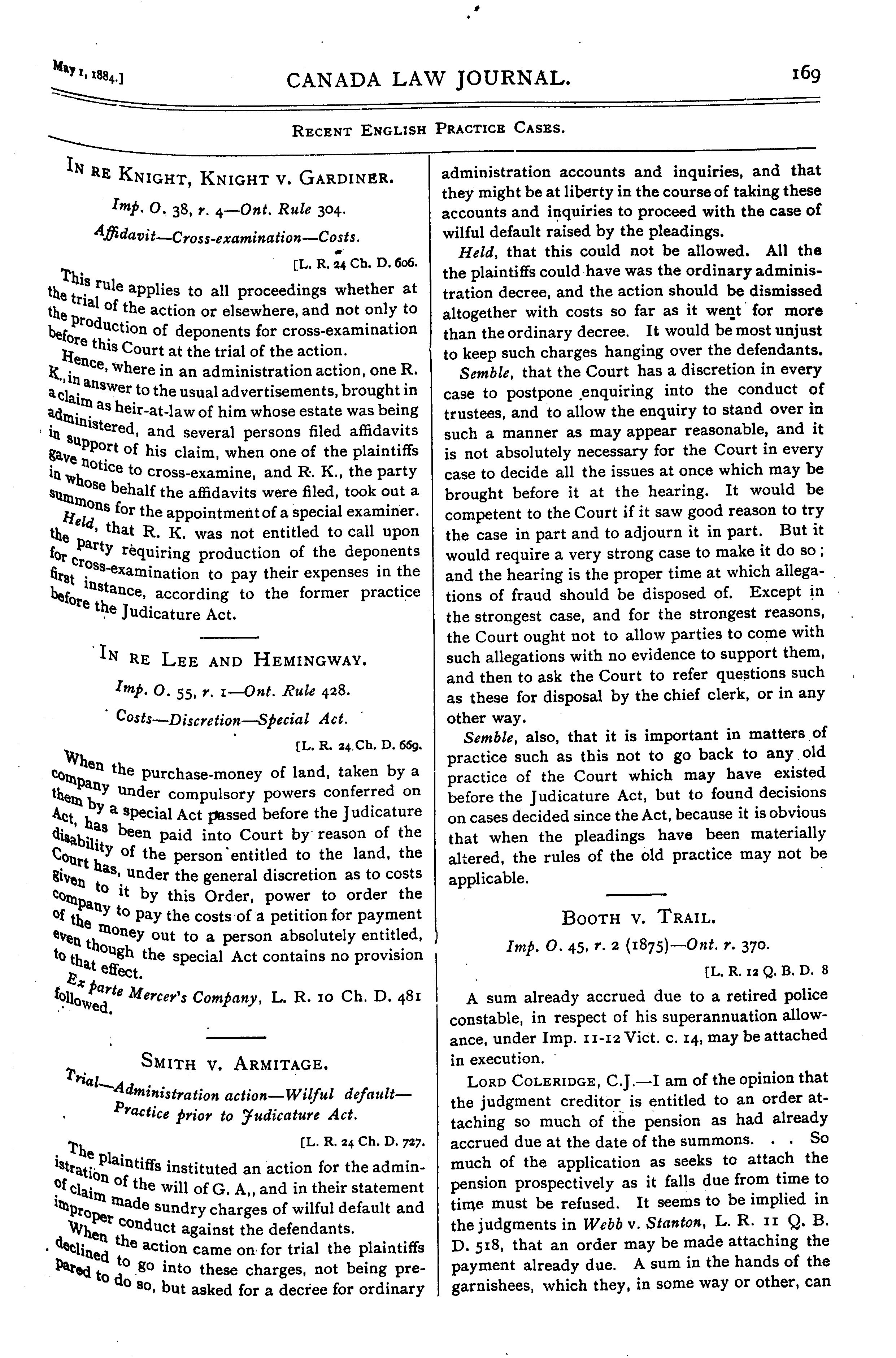 - Canada law journal [Vol. 20, no. 9 (May 1, 1884)]