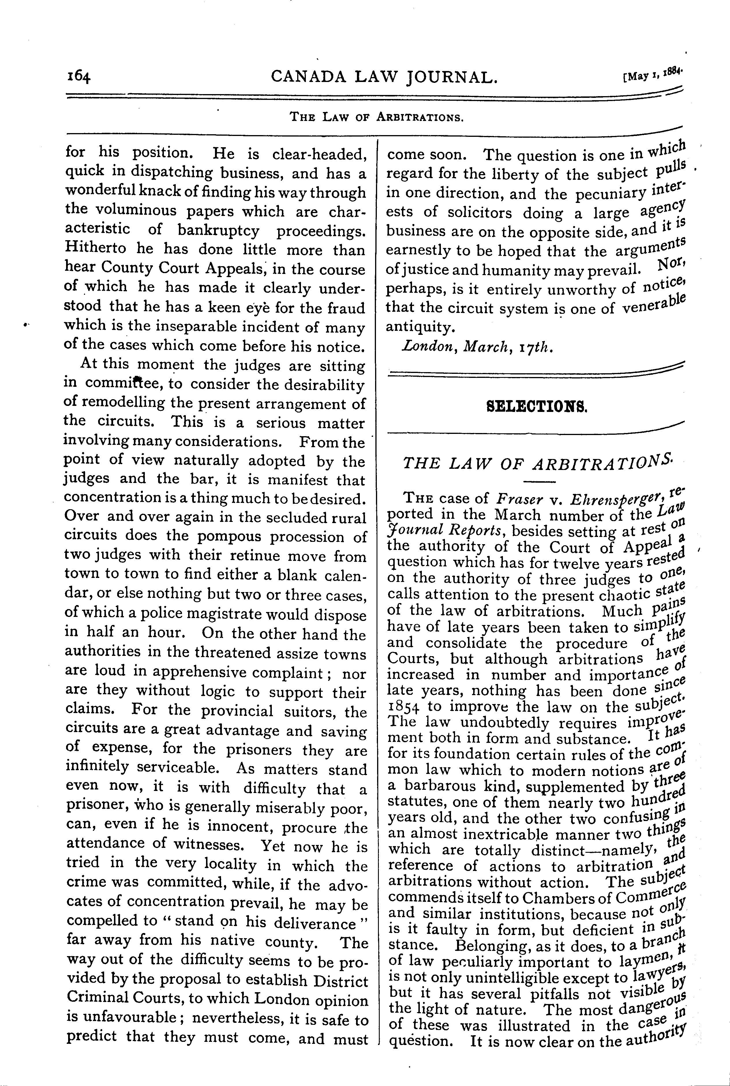 The Canada law journal : [Vol. 20, no. 9 (May 1, 1884)]