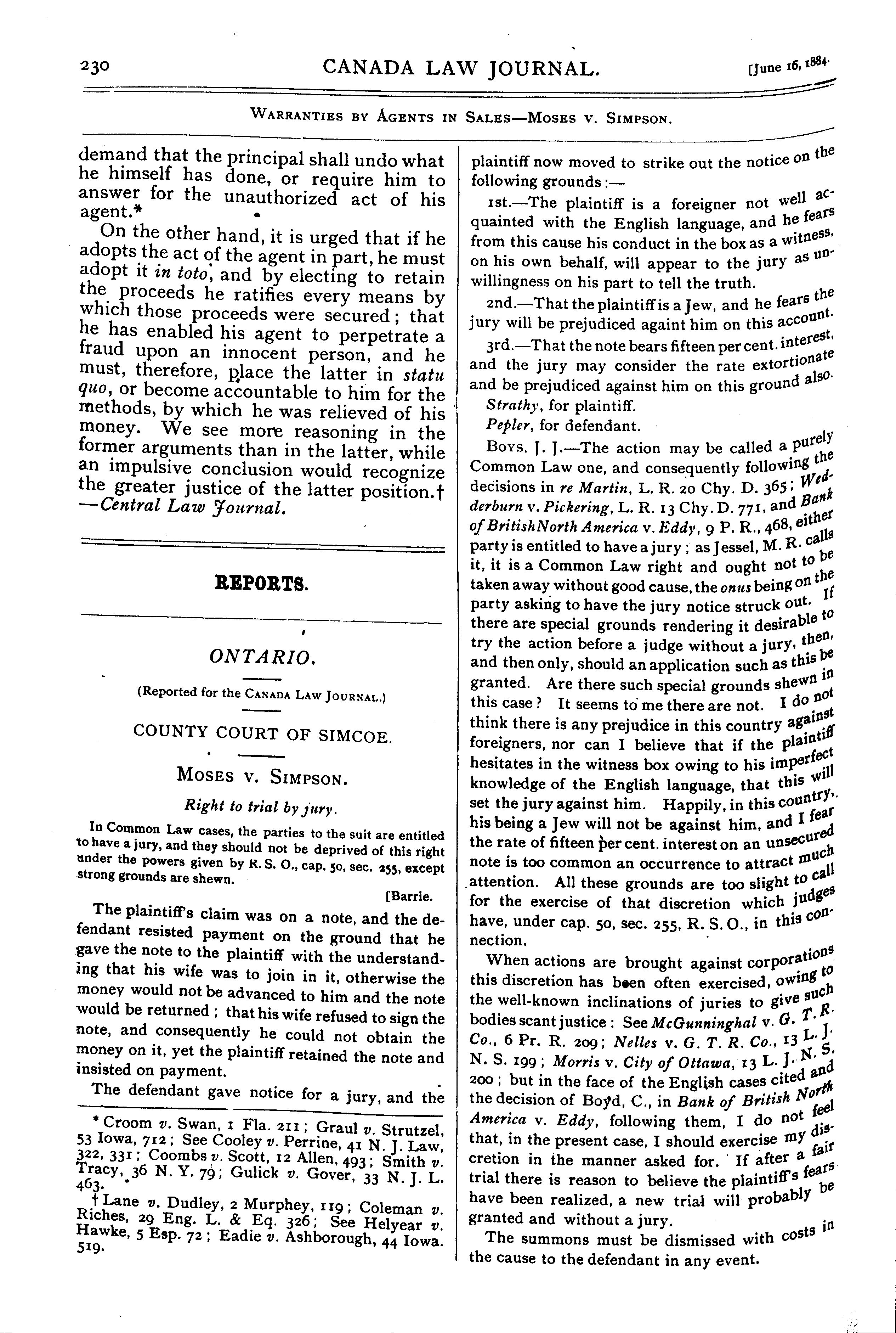 - Canada law journal [Vol. 20, no. 12 (June 16, 1884)]