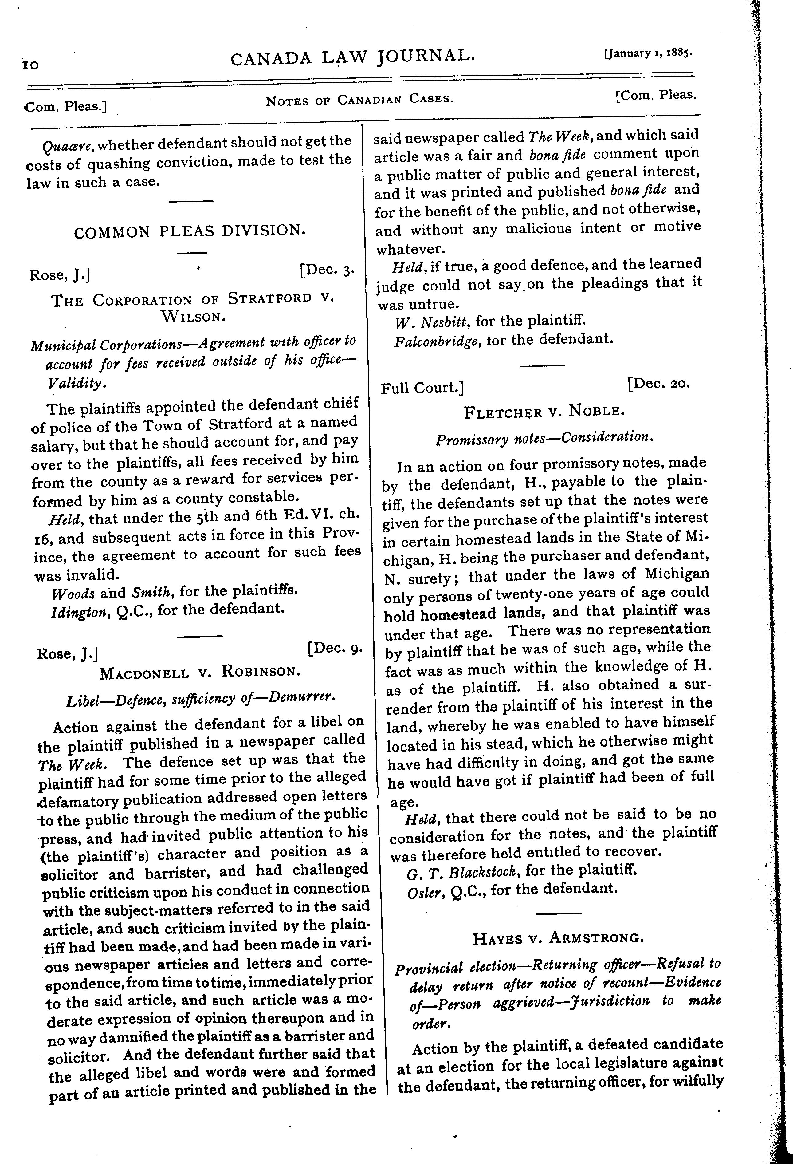 Toronto : Canada Law Journal Office, [1885?]; 30 images with full-text search