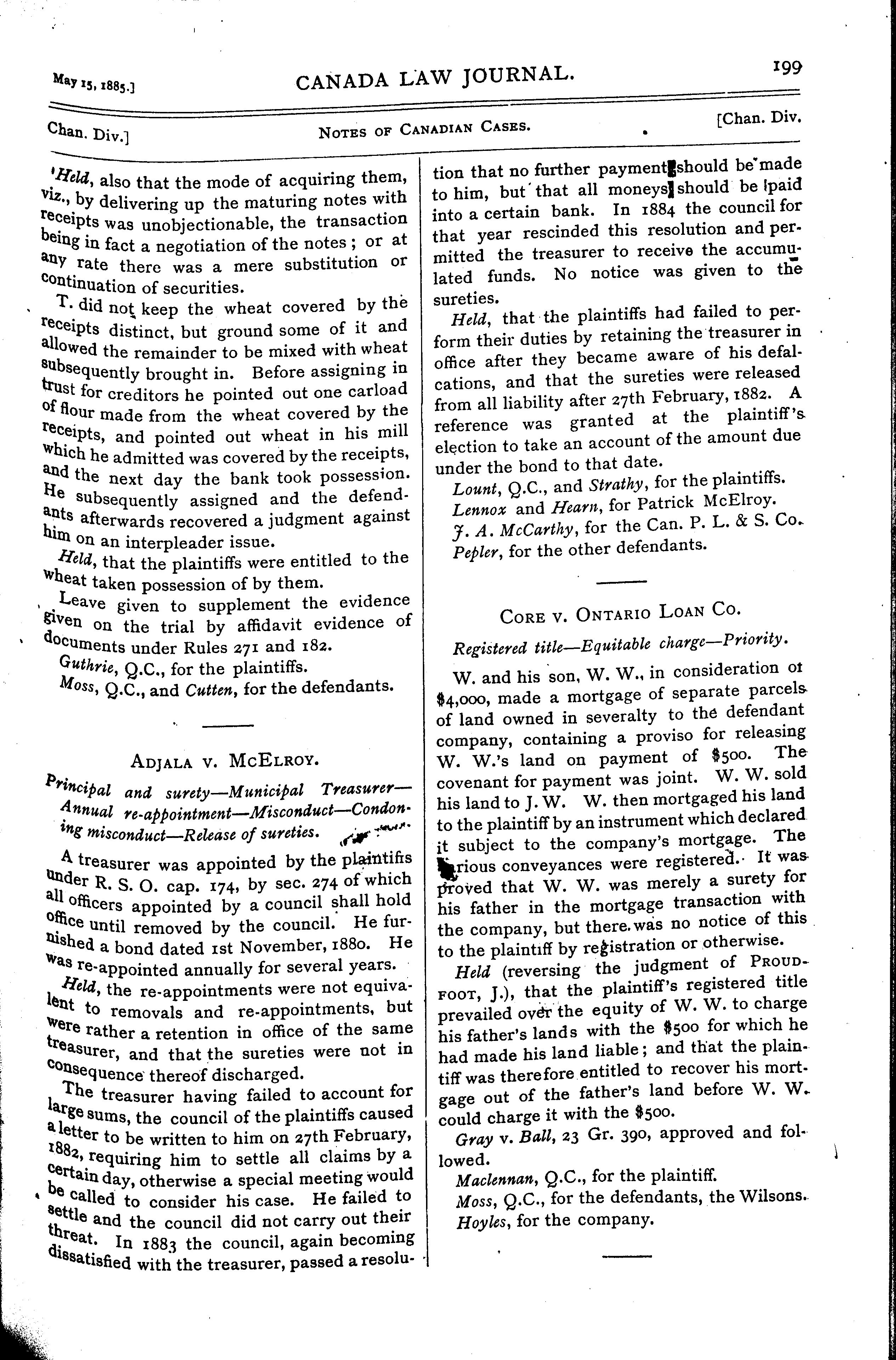 Toronto : [Canada Law Journal Office, 1885]