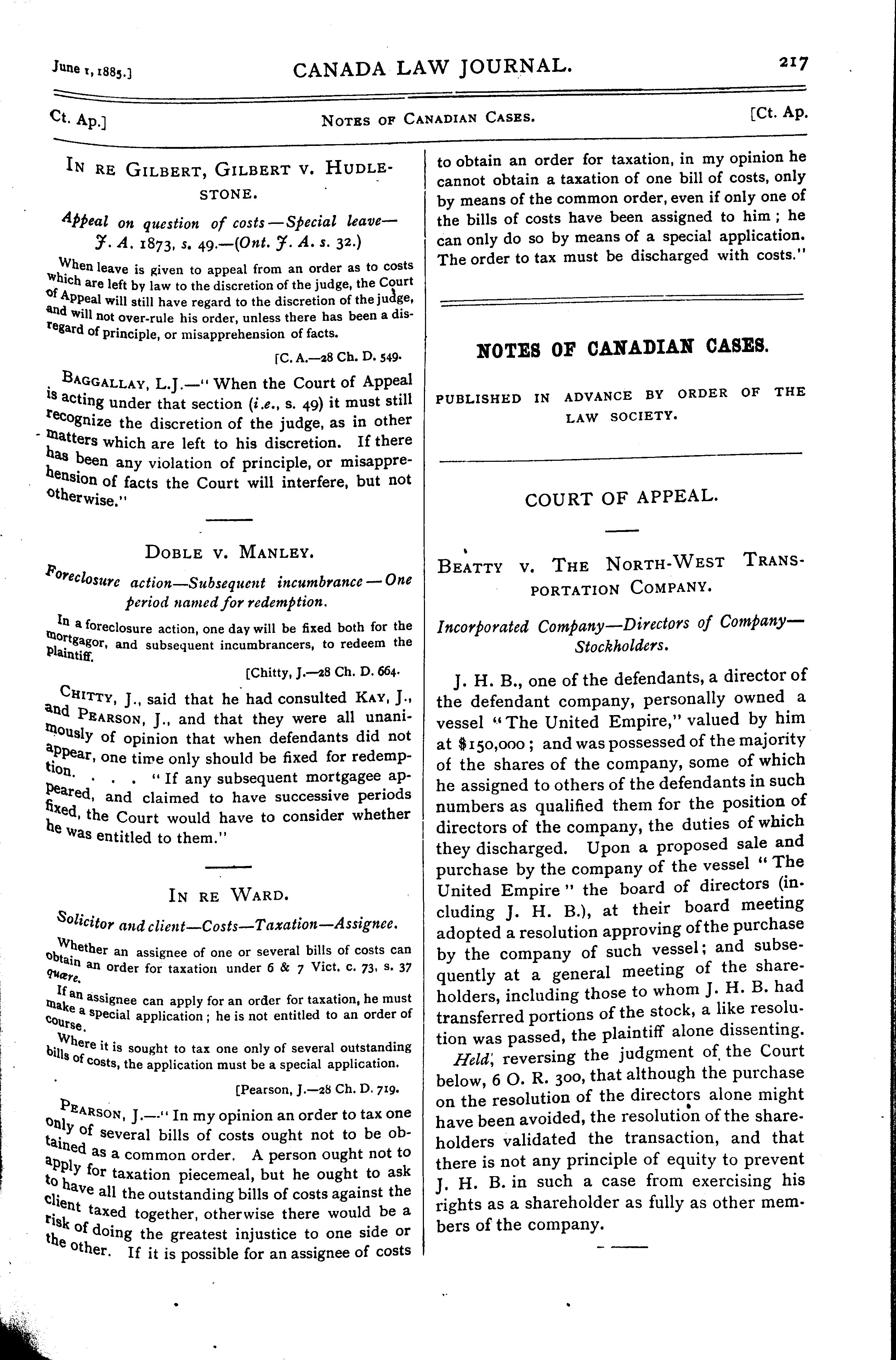 Canada law journal [Vol. 21, no. 11 (June 1, 1885)]