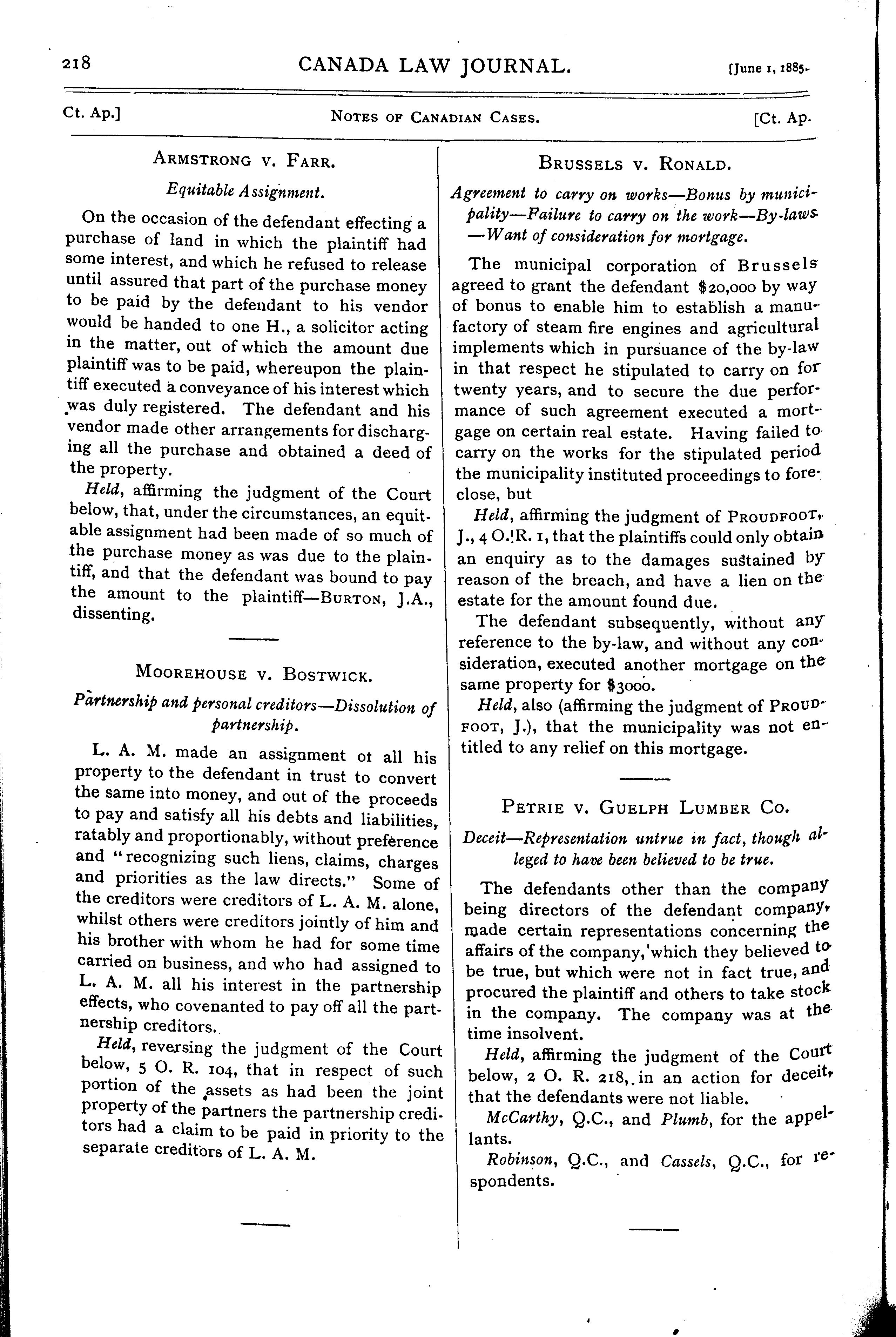 Toronto : [Canada Law Journal Office, 1885]; 20 images avec recherche en texte intégral