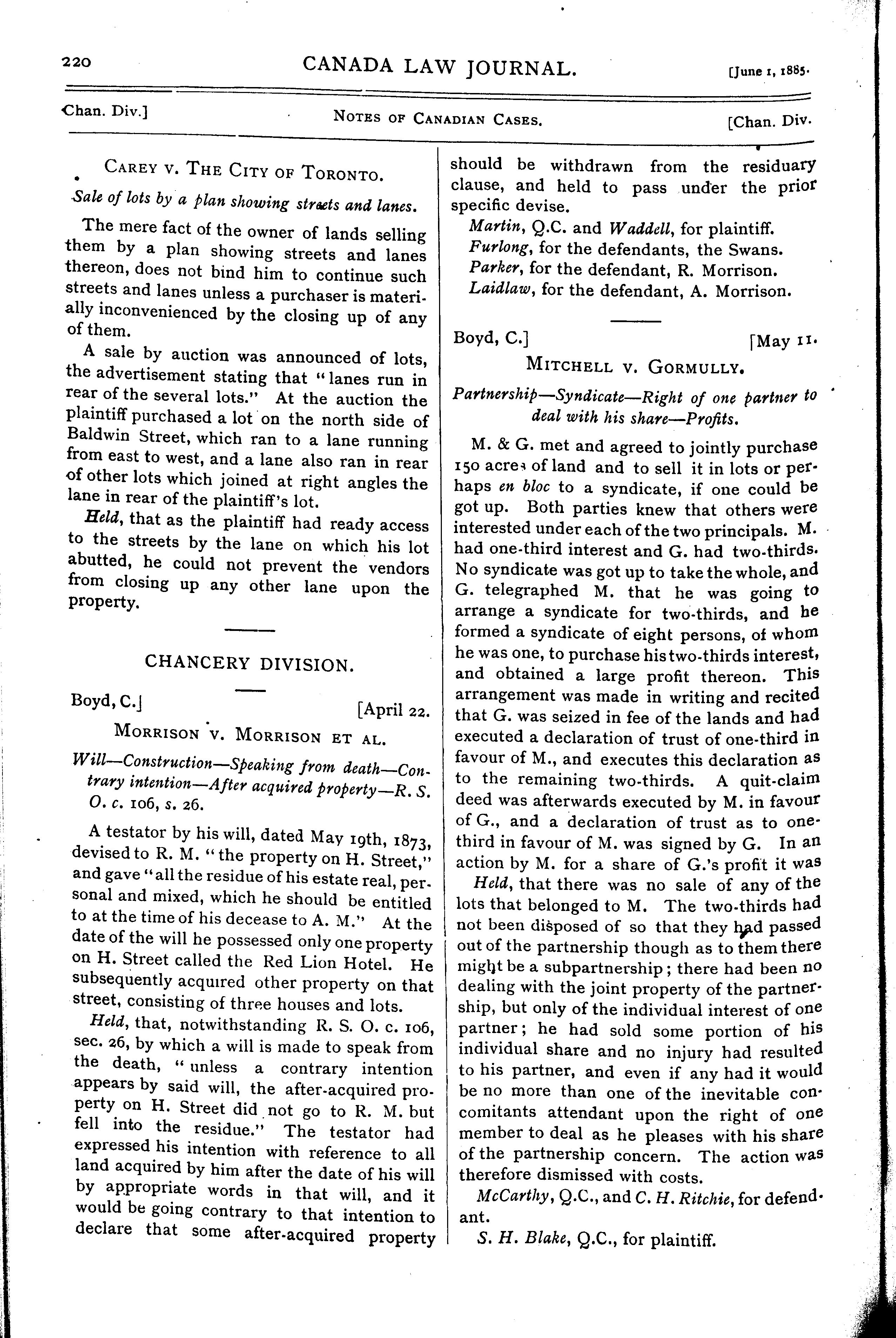 Toronto : [Canada Law Journal Office, 1885]; 20 images avec recherche en texte intégral