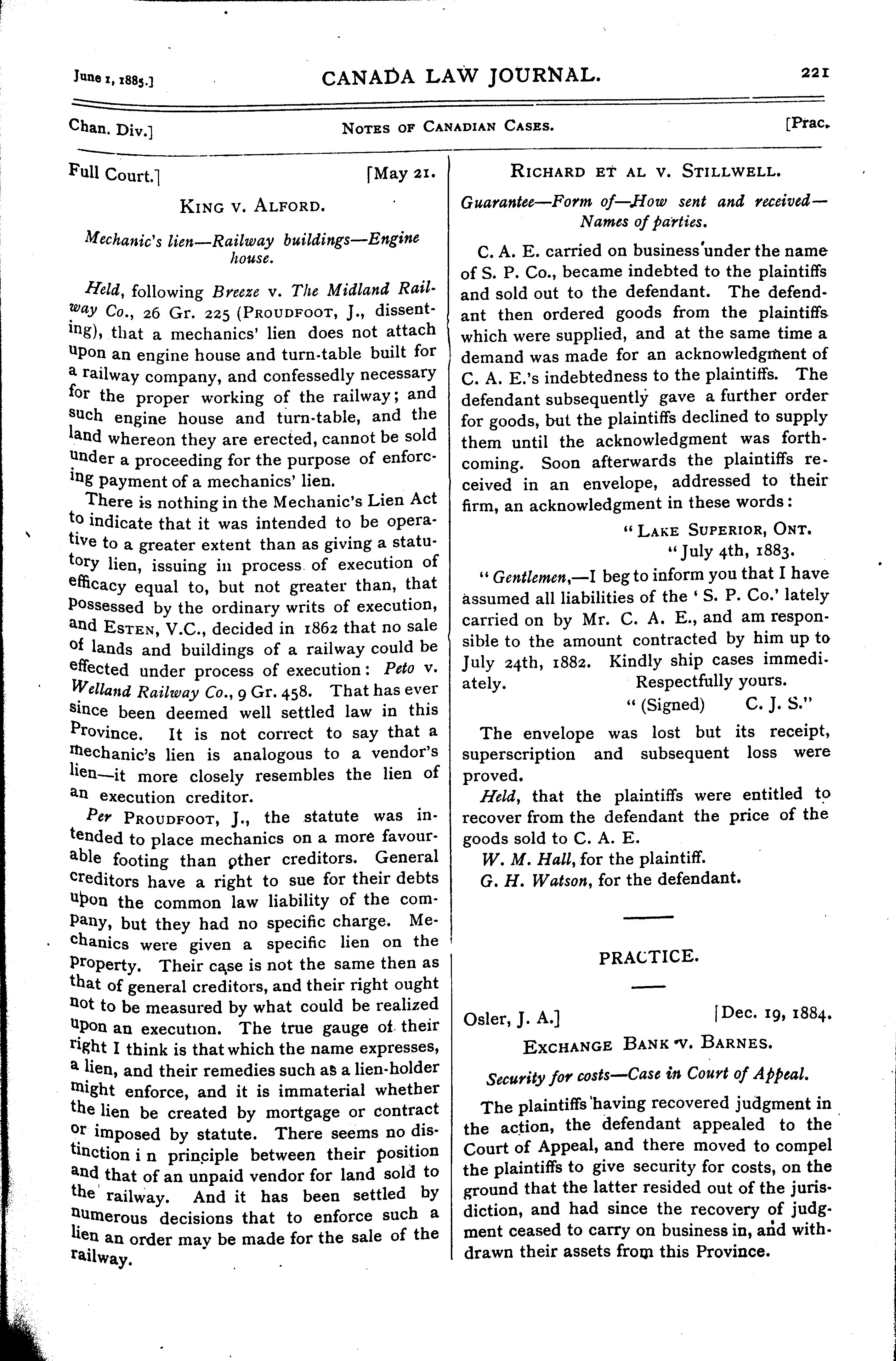 - Canada law journal [Vol. 21, no. 11 (June 1, 1885)]