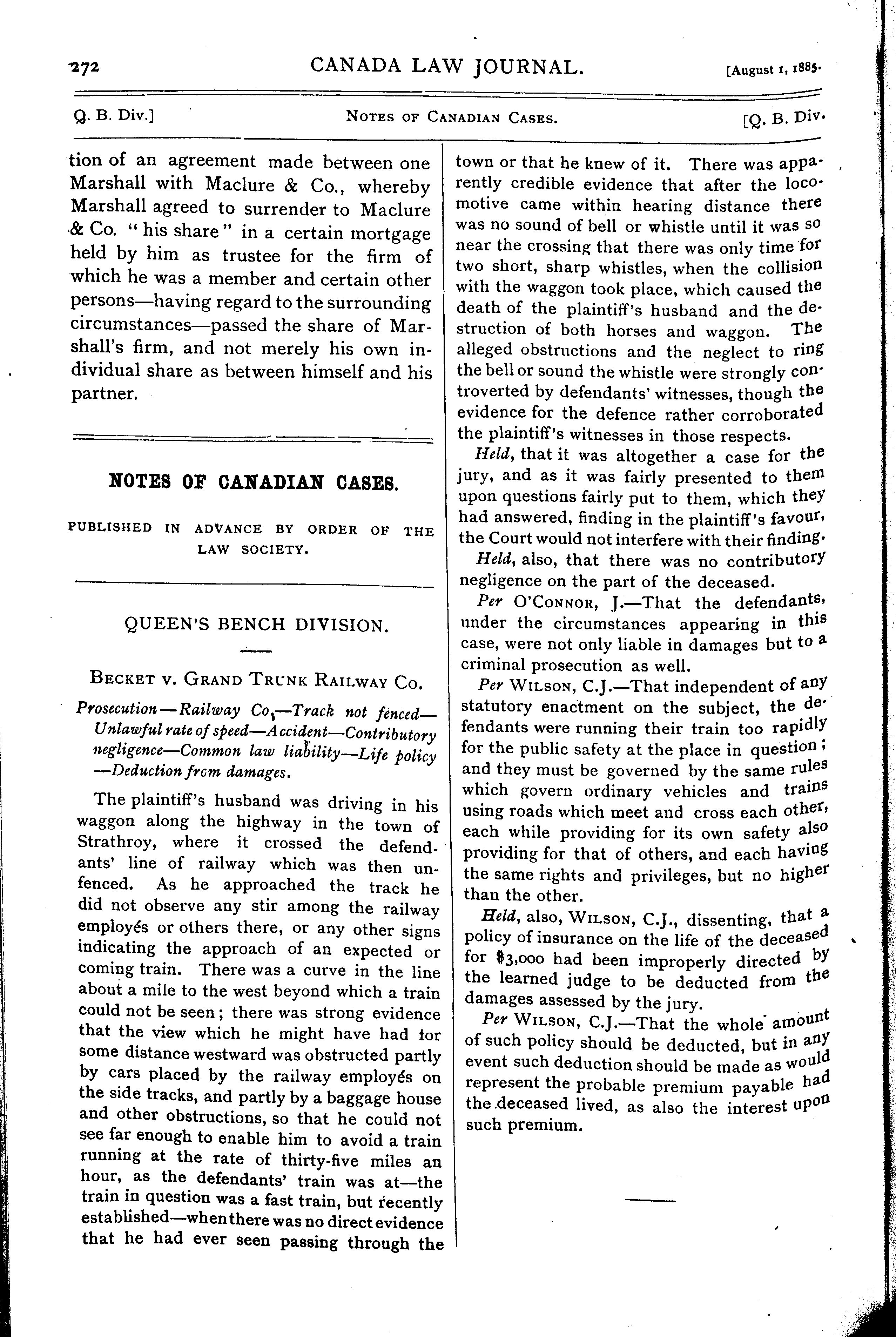 - Canada law journal [Vol. 21, no. 14 (Aug. 1, 1885)]