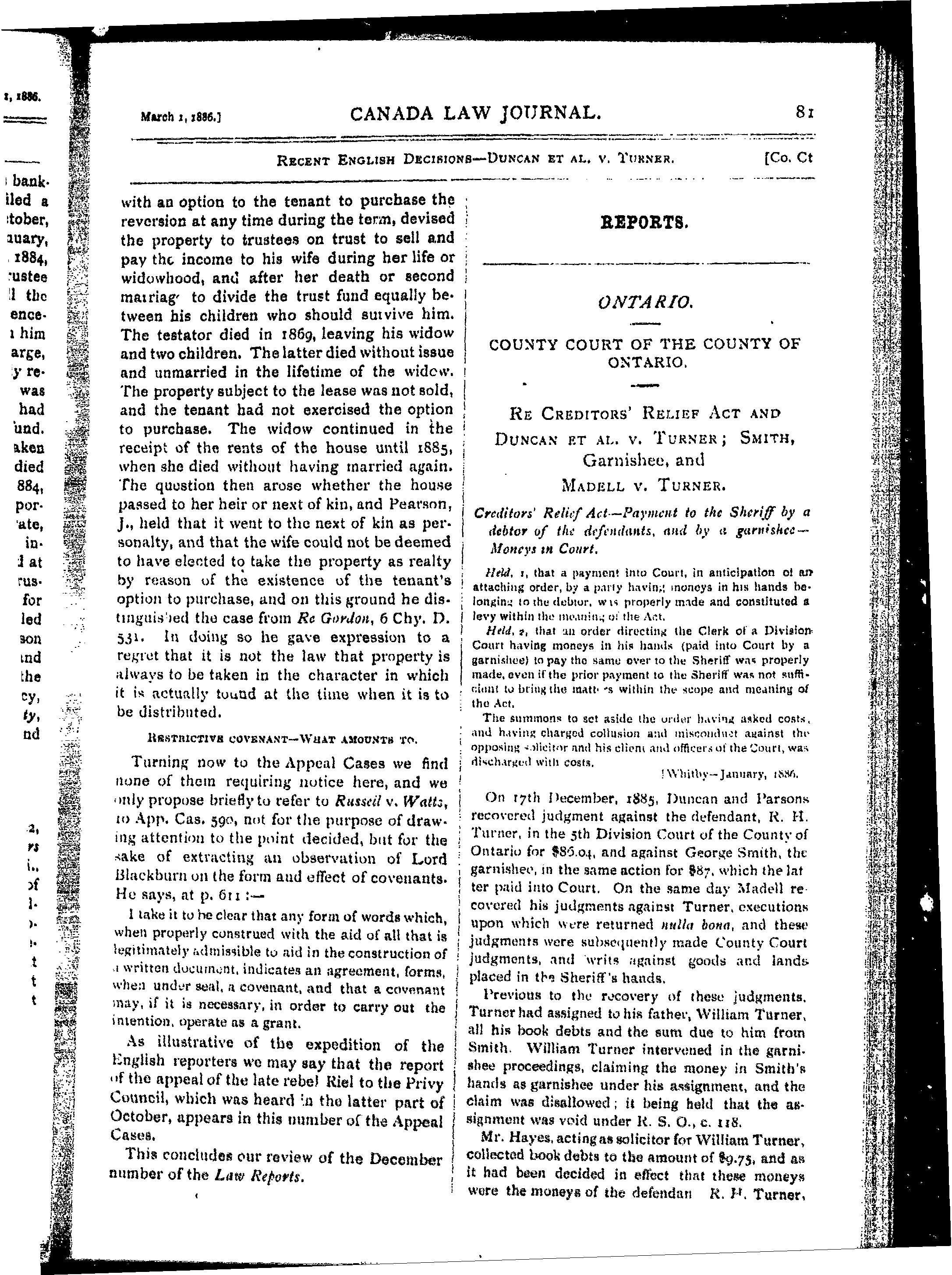 - Canada law journal [Vol. 22, no. 5 (Mar. 1, 1886)]