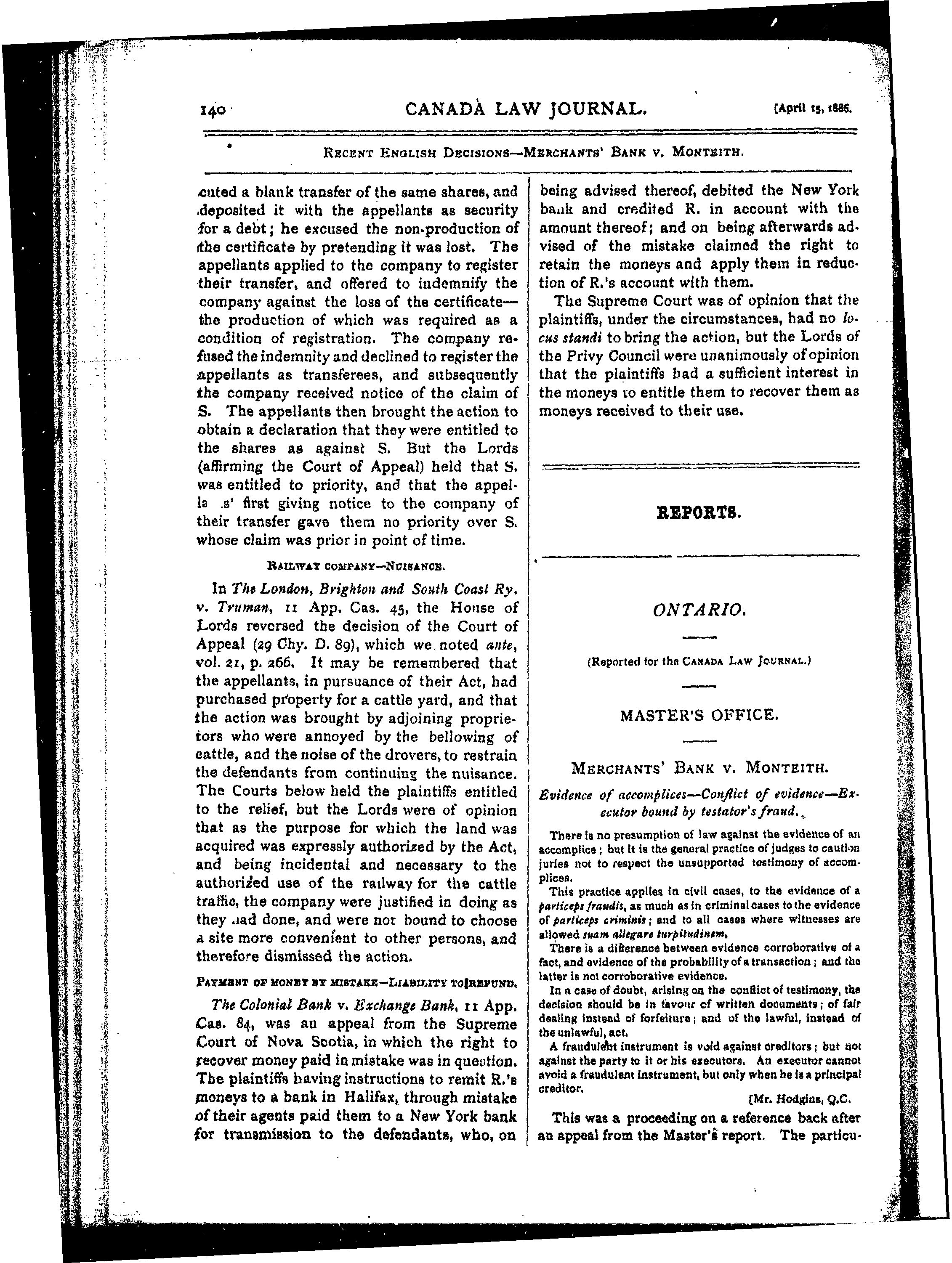 The Canada law journal : [Vol. 22, no. 8 (Apr. 15, 1886)]