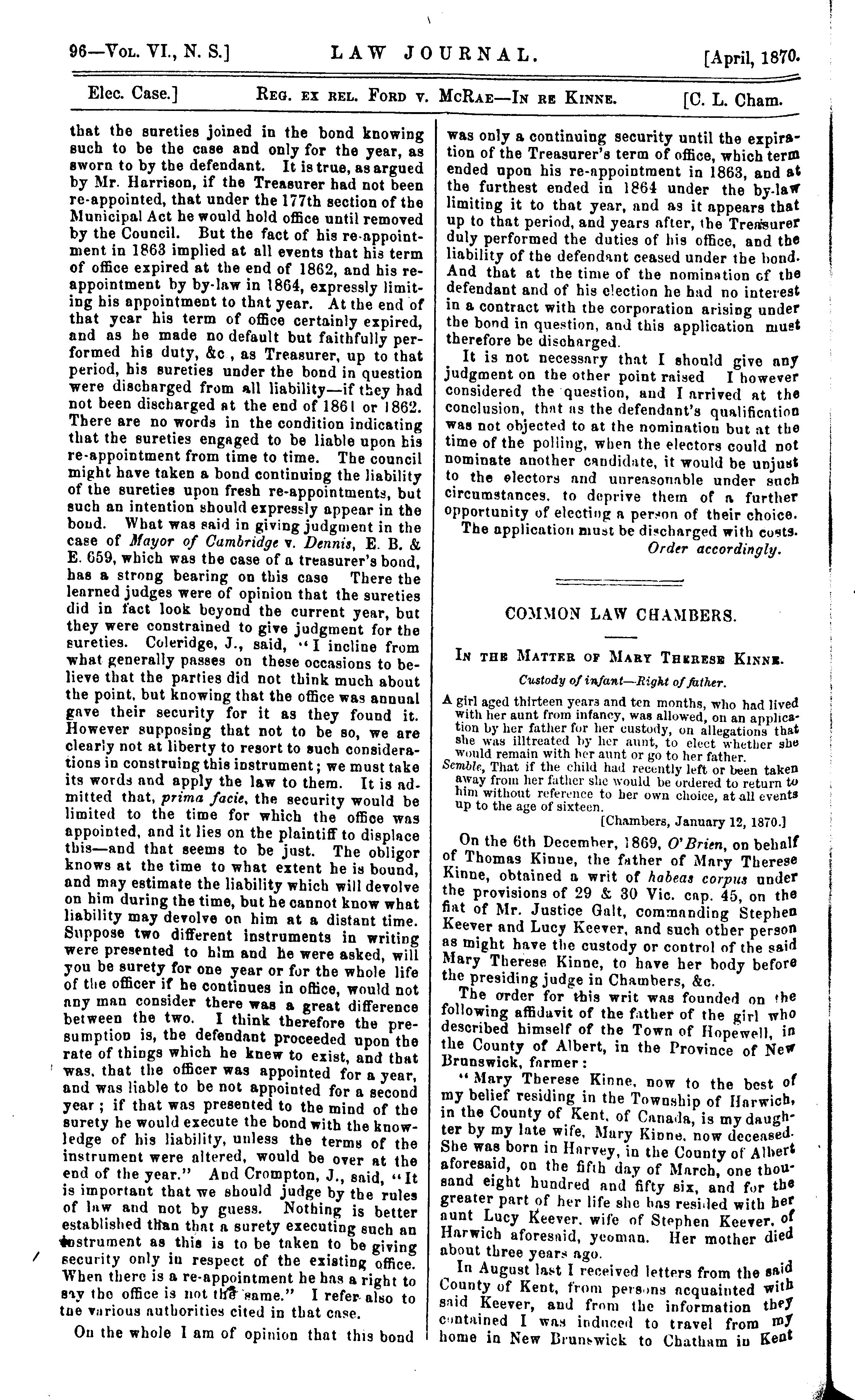 - The Canada law journal [New ser. v. 6, [no. 4] (Apr. 1870)]