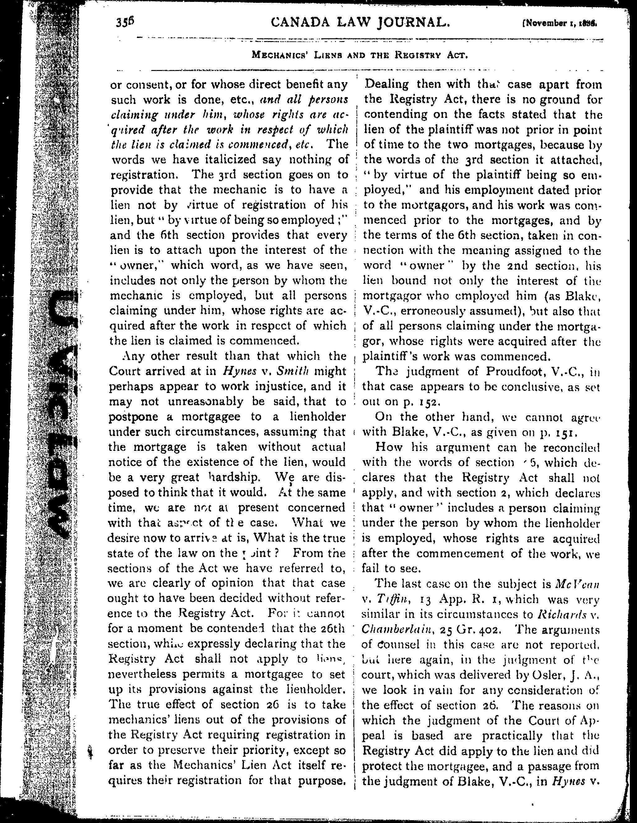 Canada law journal [Vol. 22, no. 19 (Nov. 1, 1886)]